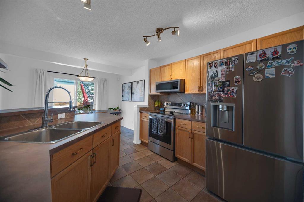 Welcome to Bridlewood! Step into this beautifully maintained two-storey home located in the family-friendly community of Bridlewood. With over 2,300 square feet of living space, this residence is designed for comfort and functionality, providing the perfect setting for your family to grow and thrive. Main Level Features: As you enter the welcoming foyer, you are greeted by an open concept main level. The generous living room is anchored by a cozy gas fireplace, creating a warm atmosphere for gatherings and relaxation. Adjacent to the living space is a spacious dining area, ideal for family meals and entertaining guests. The kitchen boasts a breakfast bar, ample cabinetry, a large pantry, and a convenient desk area with additional cupboards. Recent upgrades include a BRAND NEW stainless steel appliances namely, double-door bottom mount fridge, stove, dishwasher and over-the-range low profile microwave, making meal preparation a pleasure. The main level also features a laundry room equipped with a closet, extra storage, and direct access to the garage, ensuring daily tasks are handled with ease. Patio doors lead to a newly constructed deck, extending your living space into the private backyard. Second Level Comfort: Upstairs, a large bonus room offers the perfect setting for cozy movie nights with the family—popcorn optional! The spacious primary bedroom easily accommodates a king-size bed, end tables, and dressers, and includes a walk-in closet and a three-piece ensuite for added convenience. Two additional well-sized bedrooms and a four-piece bathroom complete the upper level, providing comfortable accommodation for family members or guests. The Main and Upper level has been completely repainted, giving the home a modern and attractive aesthetic. Lower Level Amenities: The lower level expands your family’s living space with a large family room, a wet bar for entertaining, an additional bedroom, more storage options, and a three-piece bathroom. This area is perfect for hosting gatherings or enjoying quiet evenings at home. Outdoor Living and Community Highlights: