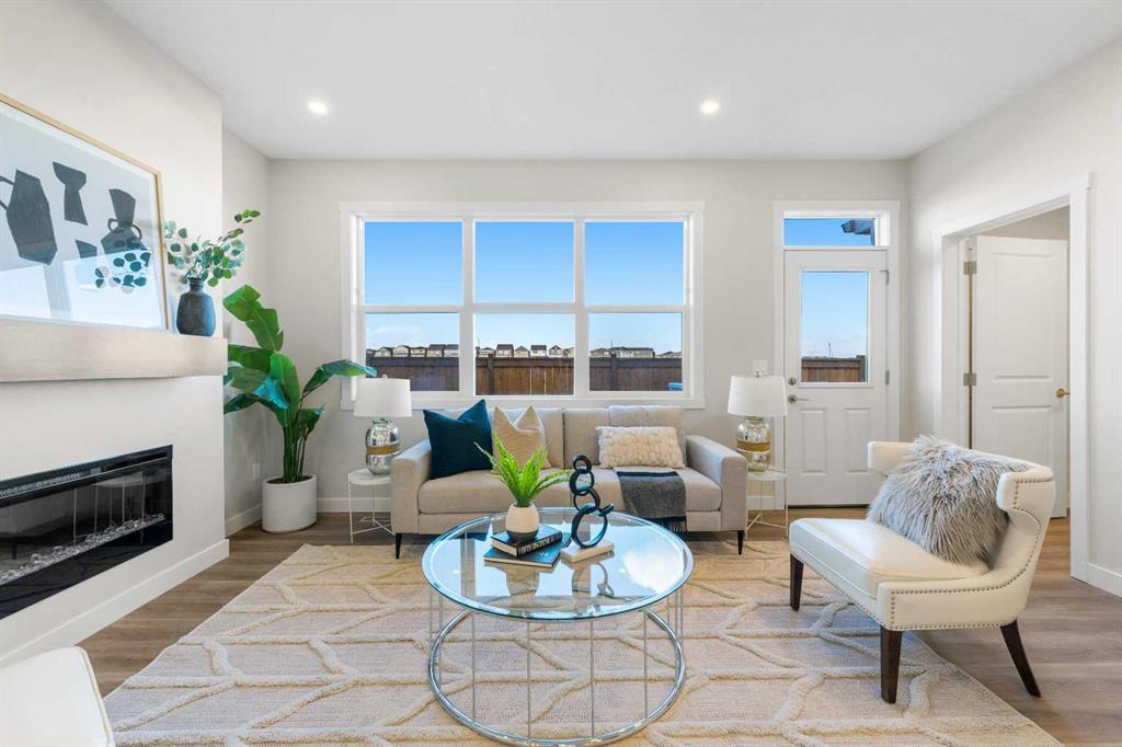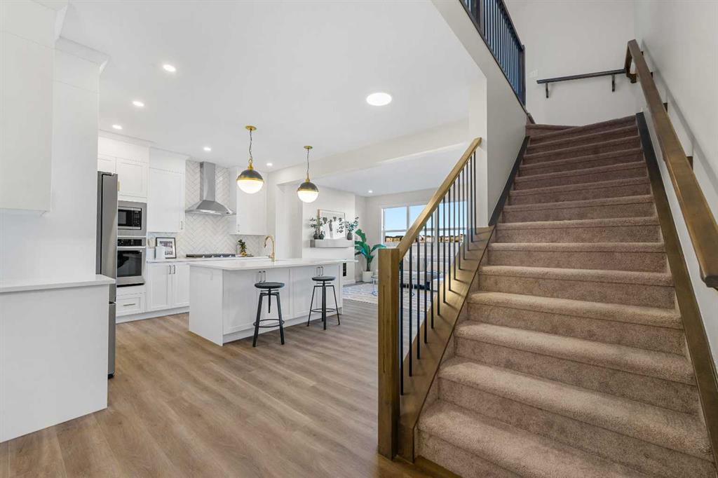 Welcome to The Delilah, an exquisite home designed and built by Genesis Homes. This stunning property offers a perfect blend of modern elegance and functional design, making it an ideal choice for families seeking comfort and style. This home boasts 2,211 SqFt throughout the main and upper levels with an unfinished basement with 9Ft ceilings and a separate entry. The main level has an abundance of living space! Starting with the multi-use flex room, great for a home office, day seating or even overnight guests. The open floor plan kitchen and great room make this an entertainer's dream. The sparkling kitchen is outfitted with quartz countertops, ample cabinet storage, and a builder package of stainless steel appliances. The barstool seating at the kitchen island is the perfect place to enjoy small meals while the formal dining room is waiting for a large dinner table. The kitchen is paired with a walk-in pantry great for dry goods storage. The great room is exactly that; with a 50" electric fireplace and TV ready wall above. The great room overlooks the backyard with large windows. The door off the great room leads to the back deck making indoor/outdoor living easy. The main level is complete with a 2pc bath. The interior is complemented by metal spindle railings, adding a touch of sophistication and durability to the stairways. Upstairs has plush carpet flooring throughout the 3 bedrooms and bonus room. The primary bedroom is a private oasis that opens with french doors to an expansive bedroom. The primary is paired with a walk-in closet and expanded 5pc ensuite bath. The ensuite has a deep soaking tub, walk-in shower, double vanity and private washing closet. Bedrooms 2 & 3 are sizeable and share the 4pc bath with a tub/shower combo. The upper level bonus room is a plush and comfortable space to unwind in the evenings. The upper level hall laundry area is conveniently placed near all bedrooms making this task easy. The basement of this home includes rough-ins ready for a legal secondary suite subject to approval and permitting by the city/municipality with a separate entrance, & 9Ft ceilings. Ready for August-September of 2025, its time to pack your bags! Hurry and book a showing at this gorgeous Genesis home today! **Photos are representative of the Delilah show home in Homestead. Finishes may differ**