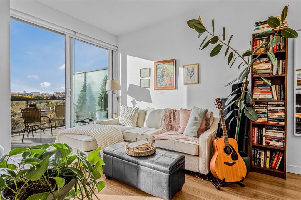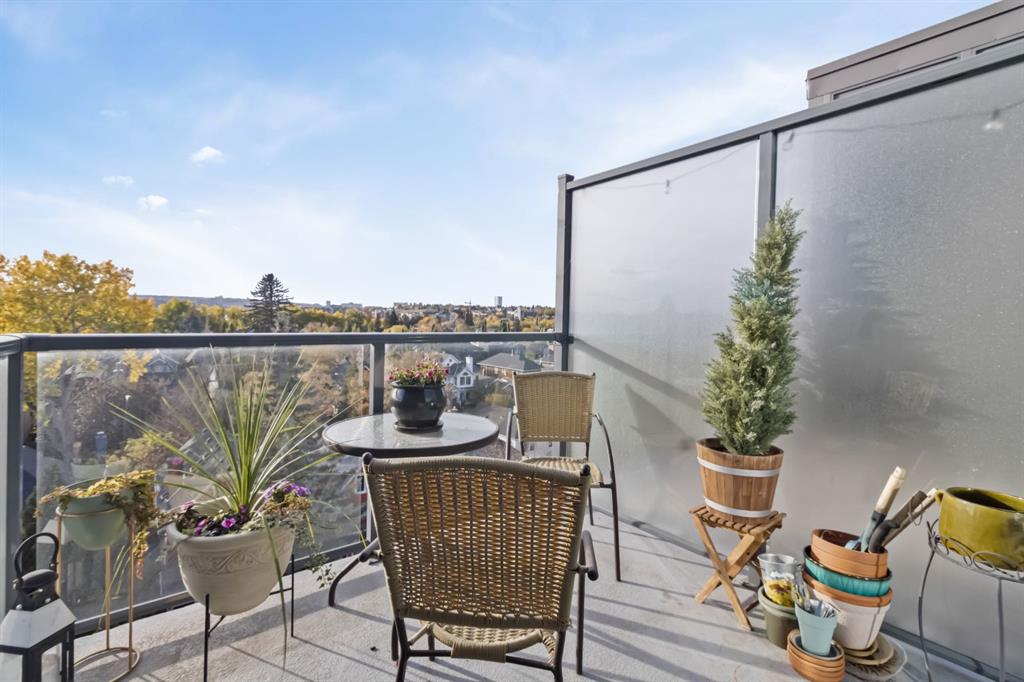 Welcome to this stunning one-bedroom penthouse suite located in the highly sought after community of Hillhurst. Perfectly positioned for an inner-city lifestyle, you’ll be just steps away from downtown, the Sunnyside C-Train station, Riley Park, trendy coffee shops, boutique shopping, and some of Calgary’s best restaurants. This top floor unit is designed to impress with a bright, open layout and floor-to-ceiling windows that fill the space with natural light. The kitchen, complete with quartz countertops, stainless steel appliances, and a gas cooktop with an eat-up breakfast bar, flows seamlessly into the dining and living areas, the perfect open-concept space for entertaining or relaxing at home. The private balcony offers breathtaking mountain views, an ideal backdrop for your morning coffee or evening wind-down. The primary bedroom features a walk-through closet leading to a spa-inspired ensuite, creating a relaxing retreat right at home. Additional features include in-suite laundry, a titled heated underground parking stall, an assigned storage locker, bike room and access to a residents’ car wash. If you’ve been looking for the perfect blend of convenience, style, and comfort in the heart of Calgary, this Hillhurst penthouse is it! Pets are welcome with board approval. This property is a fantastic investment opportunity and a must - see!
