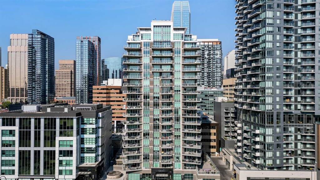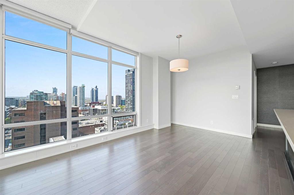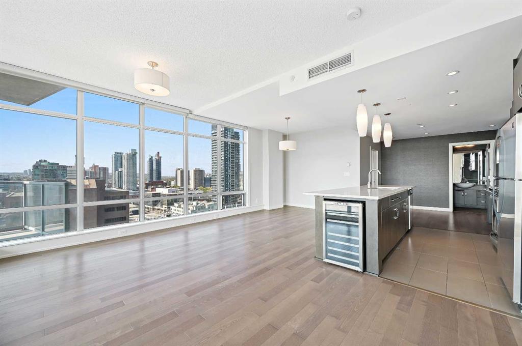 Experience elevated urban living in this extra-spacious two-bedroom, two-bathroom corner suite perched on the 14th floor of the prestigious Castello building. Wrapped in floor-to-ceiling windows, this home is flooded with natural light and showcases sweeping views of Calgary’s vibrant Beltline and downtown skyline. The thoughtfully designed layout separates the dual bedrooms, ensuring privacy while keeping the open-concept living, dining, and kitchen areas bright and connected. The primary retreat is a true sanctuary—featuring a 5-piece ensuite with an oversized glass-and-tile shower, double vanity, separate water closet, and a generous walk-in closet with custom built-ins. The spacious second bedroom features double closets and is conveniently located next to a stylish 4-piece bathroom, ideal for guests or family members. Freshly painted and beautifully finished, this suite boasts hardwood flooring, stone counters throughout, a new electric stove, a beverage fridge, custom wall coverings, and a convenient telephone desk. Enjoy the convenience of double side-by-side underground parking stalls and a separate storage locker. Step outside onto the expansive 17x24 ft balcony with a gas BBQ hookup—your private outdoor oasis with west-facing views, ideal for entertaining or unwinding. Castello offers residents an array of amenities including a large fitness studio, social room, guest suite, visitor parking, concierge service, and a stunning lobby that sets the tone from the moment you enter. Perfectly situated in the heart of the Beltline, you’ll love the easy access to 17th Avenue, Mission District, Memorial Park Library, BMO Centre, Stampede Grounds, shops, cafes, and the downtown core—all within walking distance. Professionally managed by Equium, with availability for May move-in. This is city living at its finest—don’t miss your opportunity to call the Castello home.