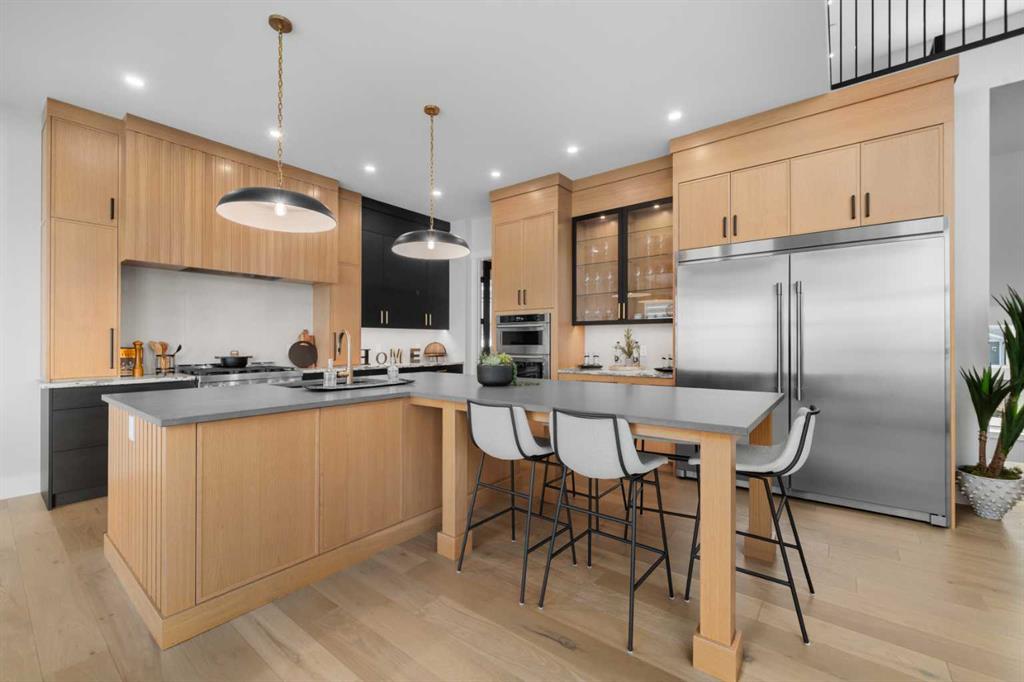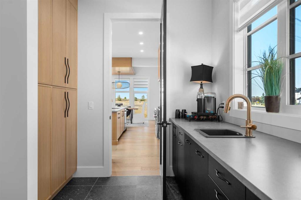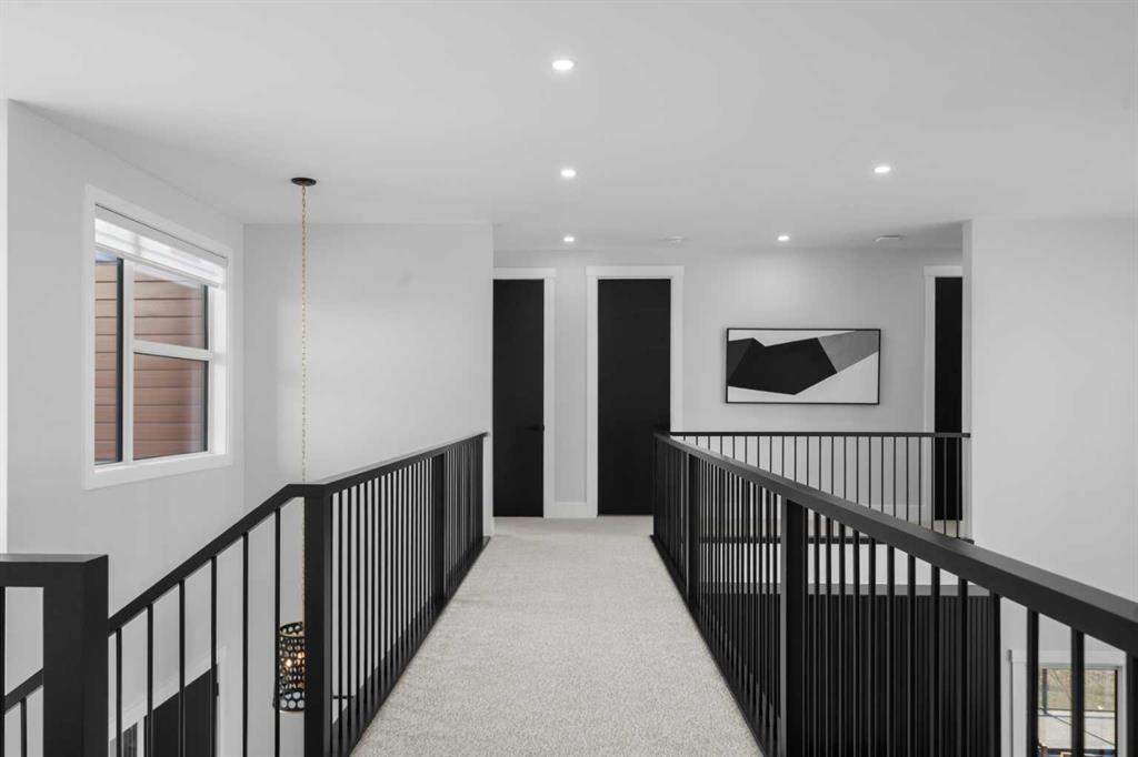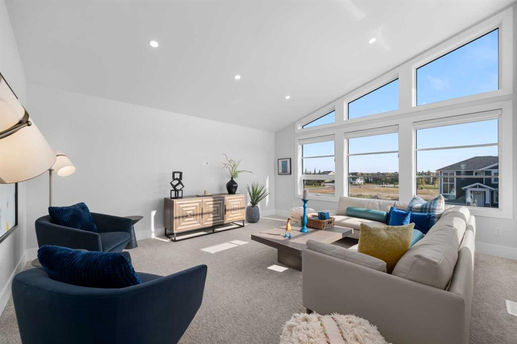 Welcome to the “Aurora” Showhome, a masterpiece by award-winning builder Cornerstone Luxury Homes (now offered with a finished basement). Thoughtfully designed with intention and purpose, this home strikes the perfect balance of elegance and comfort in the welcoming, family-friendly community of Monterra on Cochrane Lakes, just minutes from the town of Cochrane. Set on a 0.28-acre lot, this stunning two-storey offers over 4,900 sq. ft of refined living space, 5 bedrooms, 4 bathrooms and a triple car garage. A striking mezzanine bridge and expansive windows showcase breathtaking views, while the open-concept main floor creates an ideal flow for family living and entertaining. The great room impresses with soaring vaulted ceilings and a sleek linear gas fireplace. The chef-inspired kitchen features a large center island, custom cabinetry, premium appliances, and an impressive butler’s pantry. Completing the main level are a dedicated office/study, spacious dining area, oversized mudroom, and elegant 2-piece powder room. Step outside to the expansive wrap-around deck, perfect for al fresco dining and unforgettable sunsets. Upstairs, the primary retreat is a serene escape, offering space for a king-sized bed, a spa-inspired 5-piece ensuite, and a custom walk-in closet. Two additional bedrooms, a 5-piece bath, and a light-filled bonus room provide ample space for family and guests.The fully developed basement expands your living space with a bedroom, a wine bar, a comfortable recreation room, and a gym that could also be used as a bedroom ensuring the home is truly move-in ready (basement development is in progress). The oversized, heated three-car garage with epoxy floors easily accommodates vehicles, storage, and recreational gear. Monterra offers an exceptional lifestyle, with tranquil lakes, scenic pathways, and generous lots, while keeping you close to the charm of Cochrane and the convenience of Calgary. Available as a leaseback. Book your private showing today or visit the showhome during open hours to learn all that Monterra has to offer. Showhome Hours: Mon–Thurs 2:00–8:00 | Sat & Sun 12:00–5:00.