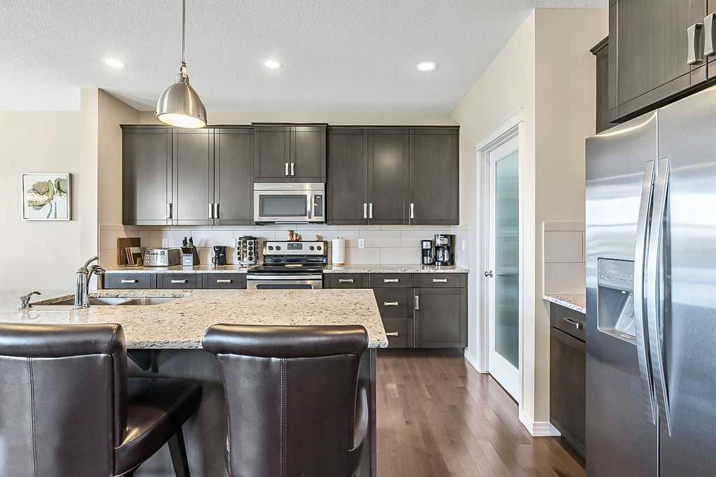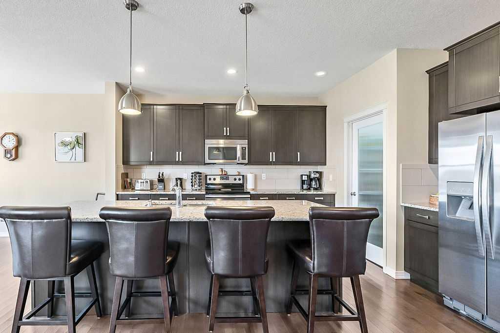 This exquisitely designed and meticulously maintained Baywest Home in Air Ranch, Okotoks, offers 2,470 sq ft of thoughtfully laid-out living space. A standout feature is the oversized 864 sq ft heated garage, can fit 4 vehicles, complete with extensive cabinetry, a workbench, and a 220V plug, ideal for electric vehicles or workshop use. The extra-wide driveway provides ample space for a large RV or multiple vehicles. The backyard is a serene, fully landscaped retreat with garden beds, a spacious wood shed, and a Duradek covered deck with a gas line hookup. Inside, the home boasts an inviting neutral color palette, high-end finishes, and smart design elements. The beautiful kitchen features an oversized island, rich cabinetry with soft-close drawers, granite countertops, stainless steel appliances, and a convenient butler’s pantry. The great room is centered around a gas fireplace with a large mantle, and large windows flood the space with natural light, main floor also offers a good sized office/flex room. Upstairs, the well-planned layout includes a versatile bonus/media room, two generously sized secondary bedrooms, and a four-piece bathroom. The luxurious primary suite is a private oasis offering breathtaking views of rolling hills and treetops, an expansive walk-in closet, and a five-piece ensuite with double sinks, a large corner soaker tub, and a separate shower. A large laundry room completes the upper level. An unfinished walkout basement with large windows awaits your personal touch, offering endless customization potential for additional developed living space. The exterior features low-maintenance Hardie siding and chain-link fencing. Situated in a prime Okotoks location, this home provides quick access to shopping, restaurants, three beautiful golf courses, and scenic walking paths. Commuting is a breeze with quick access to 48 Street and Highway 2. With its exceptional design, thoughtful upgrades, and unbeatable location, this home is a must-see. Book your private showing today!