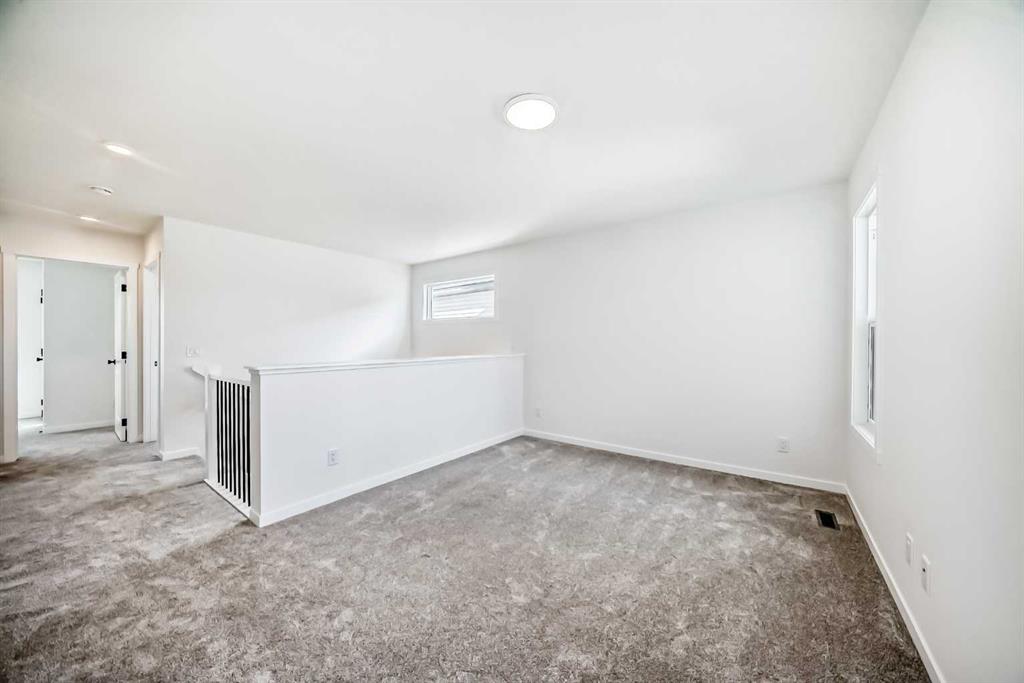 Upstairs, thoughtful design provides both comfort and flexibility. At the back of the home, two generously sized bedrooms share a 4-piece bathroom. A central bonus room separates the secondary bedrooms from the primary suite, offering privacy along with a versatile space for movie nights, playtime, or a home office. A dedicated laundry room adds everyday convenience. At the front of the home, the expansive primary retreat offers a spa-like 5-piece ensuite with dual sinks, a soaker tub, and a walk-in shower, paired with a large walk-in closet for all your wardrobe needs.
