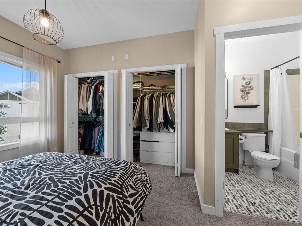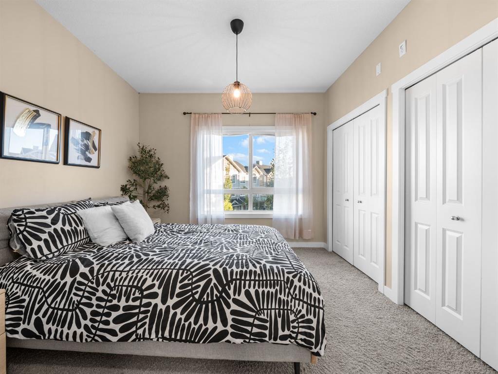 Welcome to this BEAUTIFULLY MAINTAINED 2-bedroom, 2.5-bathroom townhouse in the heart of Skyview Ranch Gardens, offering comfort, style and thoughtful upgrades throughout. Step inside to discover a bright, open layout that’s been NEWLY PAINTED and thoughtfully designed with a modern yet welcoming feel. You're first greeted by a spacious foyer versatile enough to create a cozy entryway or even a functional home office alongside a conveniently located half bath just off the garage entrance. As you walk upstairs the kitchen is equipped with updated appliances including a NEW MICROWAVE and STOVE (2025), NEWLY UPGRADED FAUCETS, and sleek NEW LIGHT FIXTURES throughout that add a touch of elegance. FRESH BLINDS on the second floor complete the space, while the kitchen window frames a lovely view of the courtyard, bringing in natural light and a pleasant outlook to enjoy while cooking. Upstairs, you’ll find two spacious bedrooms, including a beautifully REDONE primary ensuite featuring stylish finishes and upgraded fixtures. A second full bathroom serves the upper level for added convenience, while the laundry is thoughtfully located upstairs, making day-to-day chores effortless. This home also features a single attached garage, offering secure year-round parking and additional storage. The complex provides ample visitor parking, making it easy to welcome friends and family. What truly sets this home apart is its exceptional condition and smart layout crafted to maximize natural light, space and everyday livability. Whether you’re relaxing in the spacious living area, sipping coffee on your deck, or entertaining guests, this home checks all the boxes. Located in a well-managed complex with easy access to parks, schools, shopping, and transit, this is a perfect opportunity for first-time buyers, down-sizers, or investors alike. Don’t miss your chance to own a move-in ready home in one of Calgary’s fastest-growing communities! Check out the 3D Tour and book your showing today!