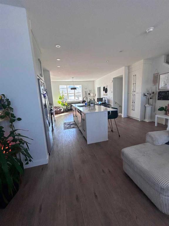 Beautifully maintained, 3 bed and 2.5 bath, like-new townhouse, with NO CONDO FEES, in Dawson Landing, very desirable area of Chestermere. This conveniently located home offers 1,560 sq ft of modern living, with an open-concept main floor, featuring a bright living, dining area, centrally located kitchen with a large kitchen island, Elegant quartz countertops, stainless steel appliances, lots of cabinetry to meet all your storage needs. 2-pc powder room, front and back entry closets completes main floor. Upstairs, you’ll find a spacious primary suite with a 4-piece ensuite with double vanity and walk-in closet, 2 additional bedrooms and another 4 pc bathroom.. The unfinished basement is ready for your creativity, currently being used as gym, storage needs. Fully landscaped front and backyard, fully fenced with double detached garage in the back with key-less entry gives you all amenities of a full house with a lower price tag. This home is located near shopping, parks, walkways and yet away from noisy main roads, makes it very desirable for living thus making very attractive rentals. Great investment opportunity in declining interest rate environment. Call your favorite realtor to book a showing!!