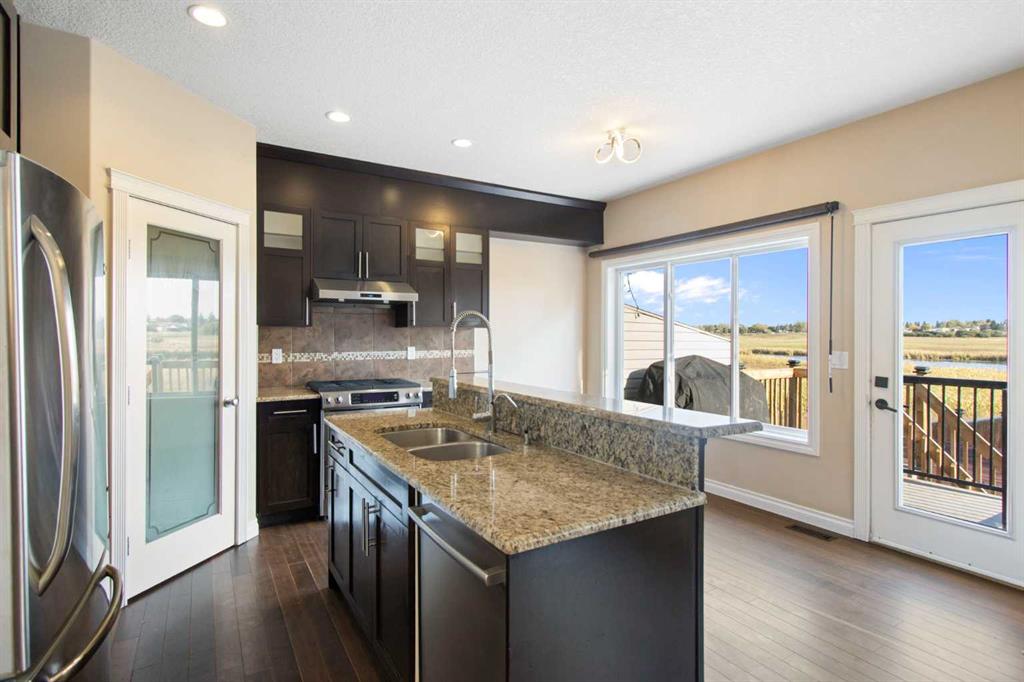 We are proud to present a wonderful opportunity to own a home on one of Strathmore’s most unique and desirable streets. Just minutes from downtown and backing onto a beautiful preserved wetlands area, this semi-detached home offers over 2,160 sq. ft. above grade, a partially finished walkout basement, and a double detached heated garage. Inside you’ll find 3 bedrooms and 2.5 bathrooms, including a spacious primary retreat with a 5-piece ensuite and private south-facing deck. The main floor features a bright living and dining area, kitchen with nook, and cozy sitting area with fireplace—all capturing stunning views of the wetlands. The partially finished basement includes bathroom rough-in, interior framing delineating a bedroom, bathroom, and large recreation area that walks out onto a lower covered patio—perfect for entertaining or extra living space. Notable upgrades include central A/C, on-demand hot water, mid-floor and basement in-floor heating, an upsized gas line with BBQ and range hookups, saltless water softener, LED lighting, upgraded toilets, and more. Exterior highlights include a new level 3 roof (August 2025). Strathmore is a vibrant community just 30 minutes east of Calgary, offering small-town charm with city convenience. With great schools, parks, and recreation, it’s ideal for families. Residents enjoy local shops, dining, and easy commuting, plus walking paths, golf, and nearby lakes for outdoor fun. Affordable housing and a welcoming atmosphere make Strathmore a perfect place to call home. A rare property with comfort, efficiency, and an unbeatable location in a thriving community.