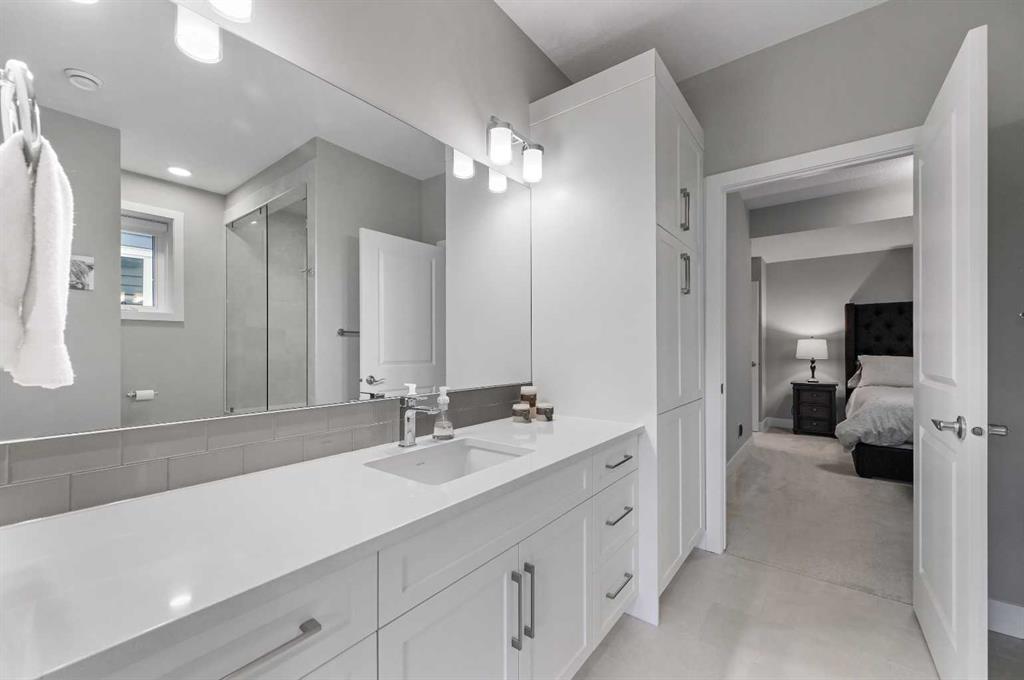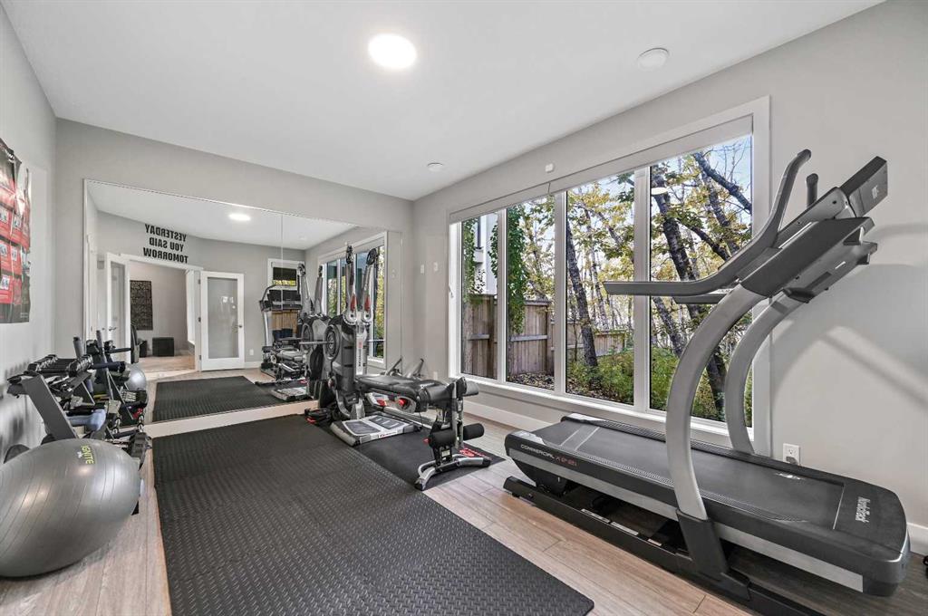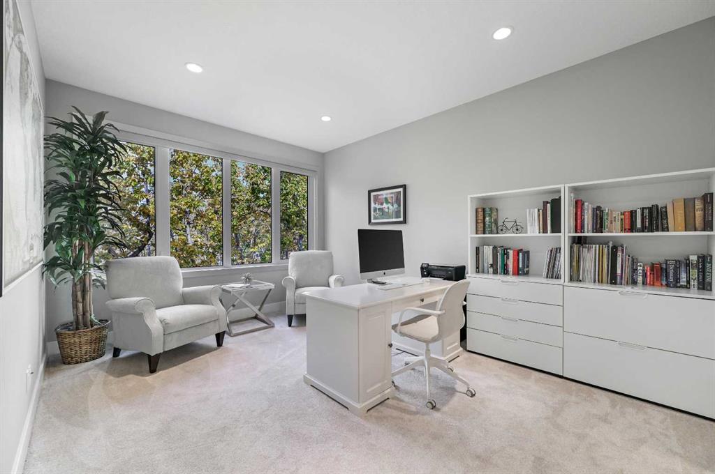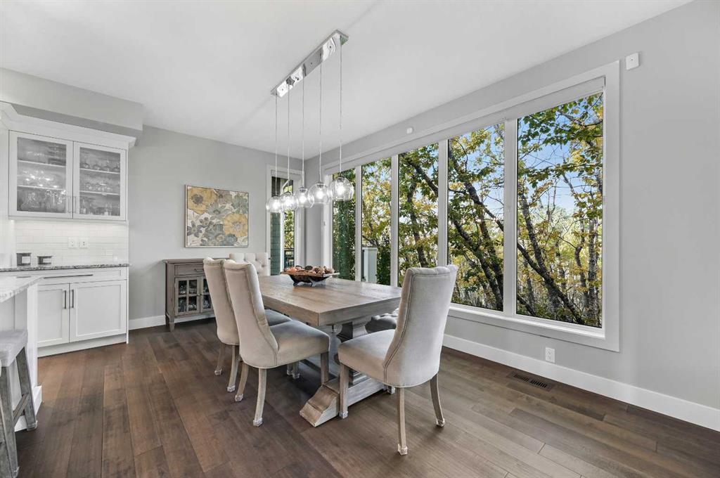 Welcome to this exceptional estate home crafted by Lupi Homes, ideally located in the highly sought-after community of Rock Lake Estates. Enveloped by mature trees, this residence offers over 4,000 sq ft of refined living space, where timeless design meets peaceful, nature-filled views and the quiet charm of the nearby lake. Step inside to soaring 9-foot ceilings, expansive windows, and timeless finishes. The main floor unfolds with a bright living room, framed by large picture windows that showcase serene views of the surrounding trees and glimpses of the lake beyond, flowing seamlessly into a spacious dining area ideal for entertaining. The chef’s kitchen impresses granite countertops, a massive central island, and premium appliances—including a built-in KitchenAid induction cooktop, built-in stainless steel hood fan, double wall ovens and microwave, Samsung smart refrigerator and a Frigidaire Gallery upright freezer. Thoughtful storage includes a walk-in and prep pantry, both with custom shelving and a built-in spice rack. Completing the main level are a private office, a 2-piece bath, and a well-designed mudroom with built-in bench and cabinetry. Upstairs, a welcoming family room and bonus area provide space to unwind. The primary suite offers a luxurious retreat with a spa-inspired 5-piece ensuite featuring heated floors, quartz counters, and a curbless tiled shower. Two additional bedrooms each include built-in benches and share access to a charming “secret room” hidden between them— perfect for play, additional bedroom, or nanny space. Both bedrooms have their own ensuite, with one offering dual access from the bedroom and main living area for added convenience. The fully developed lower level continues the elegant feel, offering a spacious recreation area with built-in wet bar and Marvel bar fridge, an exercise room, a fourth bedroom, a 3-piece bath, and abundant storage. A separate entrance leads to the private covered patio and west-facing backyard—an ideal setting for relaxing evenings surrounded by mature trees and natural scenery. Throughout the home, custom built-ins add both beauty and practicality—from vanities and closets to shelving and pantry organization. The garage is roughed for heat and plumbing for a future dog wash, with epoxy flooring for a polished finish. Additional highlights include two furnaces (one with a new motor), Ecobee smart thermostats, a roughed-in speaker and central vacuum system, and a modern security setup. Nestled within Rock Lake Estates in Rocky Ridge, this home offers a perfect balance of natural beauty and urban convenience. Everyday essentials, cafés, and restaurants are just five minutes away at Royal Oak Centre. Families will value the proximity to highly rated schools, including William D. Pratt and Royal Oak School, both under ten minutes from the home. For recreation, the YMCA is only a short drive, featuring a full aquatic centre, fitness facilities, and year-round programs.