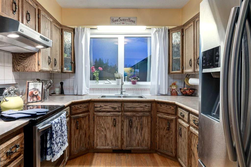 At the end of a quiet Oakridge cul-de-sac, this sprawling property welcomes you with a nearly 10,000 sq ft lot and a layout designed for comfortable family living. Step inside to a bright living room that flows into the dining area and kitchen—perfectly set up for everyday meals. From here, move into a spectacular family room with vaulted wood ceilings and a striking brick wood-burning fireplace that radiates warmth and character. Oak hardwood floors tie the spaces together with timeless appeal. The bedrooms are thoughtfully arranged with a private primary suite, complemented by two additional bedrooms and a full bath, offering plenty of space for family or guests. Downstairs, the partially finished lower level provides a spacious recreation room ideal for movie nights or game days, a fourth bedroom, a full bath, and even a sauna for the ultimate relaxation at home. The unfinished space is perfect for storage! Outside, the huge backyard becomes an extension of your living space with its cobblestone patio and low-maintenance landscaping—perfect for barbecues, gatherings, or simply unwinding in peace. An oversized double garage and front facing driveway offers ample parking and storage. Beyond the property, Oakridge offers some of Calgary’s most beloved amenities: enjoy the extensive pathway network and year-round activities at South Glenmore Park and the Glenmore Reservoir, explore the nature-rich trails of Weaselhead Flats, or spend a day at Southland Leisure Centre with its wave pool, arenas, and climbing wall. Families appreciate the Oakridge Community Association’s programs and seasonal skating, and its location, close to shopping, schools and local parks and playgrounds. Whether you choose to enjoy its timeless charm or renovate to suit your style, this property provides endless opportunity and is ripe with potential.