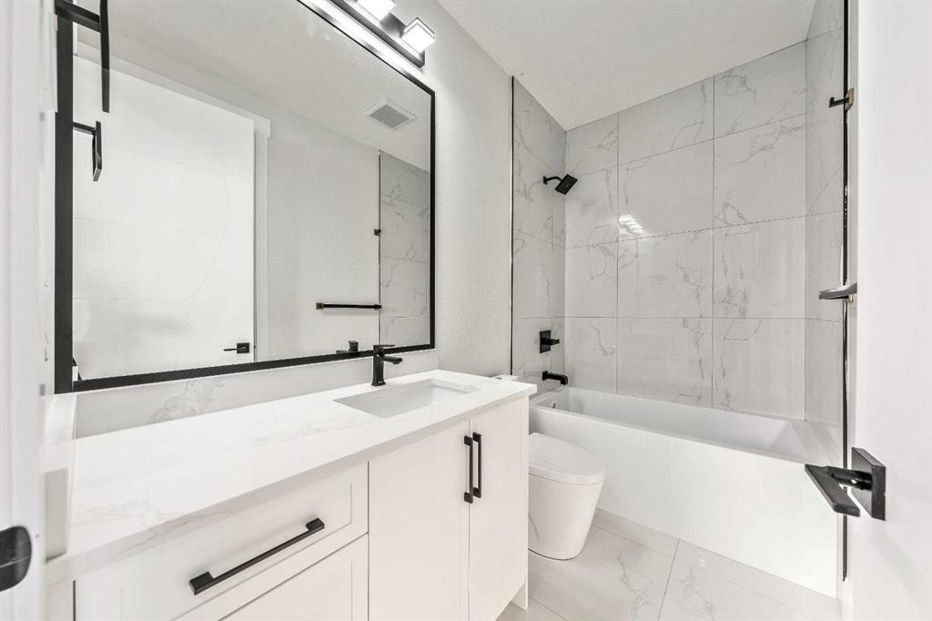Welcome to the lap of luxury in Rosscarrock. This beautifully appointed infill (construction completion in early 2026) is within one kilometre walking distance to Westbrook C-train station, Westbrook mall, E-MART, Walmart, Starbucks, and many pubs/restuarants which makes it an ideal location with its 2 BEDROOM BASEMENT LEGAL SUITE. Have Kids with allergies? NO CARPETS THROUGHOUT. The Main floor has 10’ CEILINGS, wide front entrance, an enormous dining area to fit a harvest table, luxurious kitchen with quartz backsplash, 14' long island with a magnificent quartz countertop and dual waterfall feature and cabinet doors on both sides (plenty of storage space for all your small kitchen appliances), a show-stopping "COMMERCIAL STYLE" 36 INCH GAS RANGE, Impressive 48" FRIDGE and High-end BEVERAGE COOLER in the seamlessly situated coffee bar that is open-to-above. The Living room has an opulent 50' GAS FIREPLACE with built-ins and sliding patio doors that opens to a maintenance-free, composite plank party deck. The mud room has sitting bench and hangers, and will lead a conveniently located powder room. The highlight of the top floor is the Massive Primary bedroom with vaulted ceiling, spacious WALK-IN HIS & HER closets and a spa-like ensuite which will have a tiled STEAM SHOWER, double vanity, and a free-standing tub. The top floor is completed with a laundry room with sink, two bedrooms, one which has "cheater-ensuite" access to the common 4-piece bathroom. Every main and top floor bathroom has electric in-floor heating with their own thermostat, 200 AMP SERVICE TO HOUSE ensures there is enough power for house and a legal basement suite. The BASEMENT HAS A SEPARATE SIDE ENTRANCE, access to the furnace/mechanical room is in the common area so basement tenants do not need to be bothered/notified if you have to access the mechanicals. The basement ceiling has sound reduction features in the ceiling, hookups for a private laundry, kitchen and living room (with a gas fireplace), ITS OWN FURNACE and roughed-in in-floor heating. Did I mention TRIPLE PANE WINDOWS THROUGHOUT which are more energy efficient and improve sound insulation within the house? Other features include GFCI OUTLETS BEHIND EVERY TOILET (required for heated bidets), 200 AMP service in home, HEATED (also insulated, drywalled and painted) GARAGE WITH 200 AMP SERVICE with an EV CHARGING RECEPTACLE suitable to connect a Level 2 charging station. Photos are from a recently finished project. Taxes on completed home not yet assessed. Measurements taken from building plans and interior photos from a recent project completed by builder that will have similar finishings.