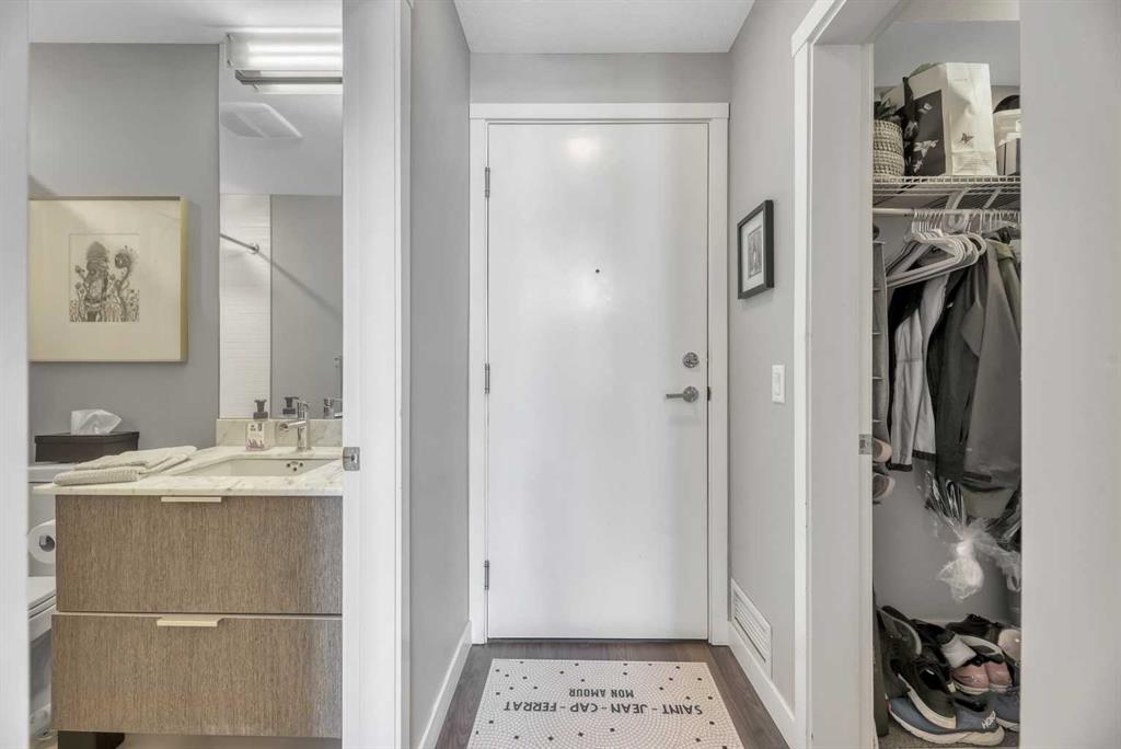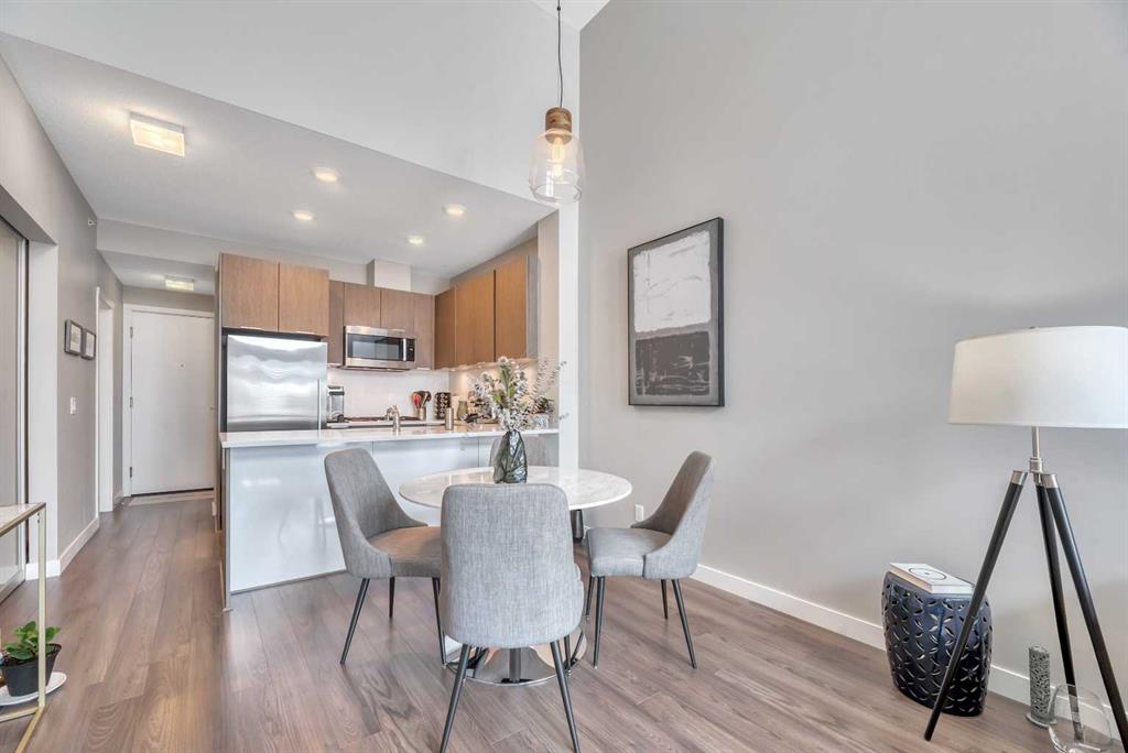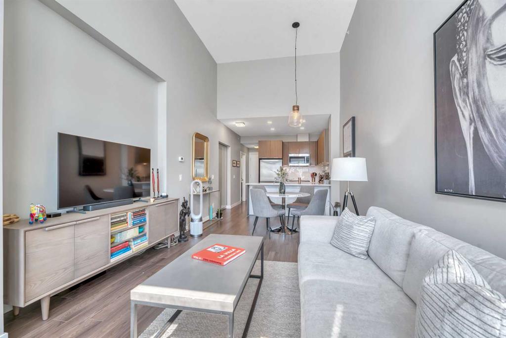 Welcome to PENTHOUSE life at The Ven, where contemporary style meets an unbeatable inner-city location in the heart of vibrant Sunnyside. This stunning sunny SE facing, top-floor condo with 14' VAULTED ceilings offers one bedroom, spacious den/guest room , two full bathrooms, and 741 square feet of beautifully designed living space—all framed by breathtaking, unobstructed views of Calgary’s downtown skyline.