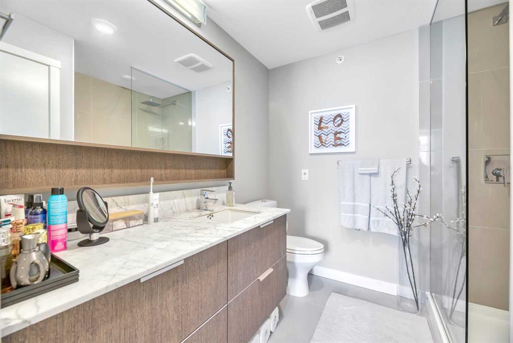 The two bedrooms are thoughtfully separated for added privacy. The spacious primary suite offers a walk-through closet and a stylish four-piece ensuite, while the second bedroom and additional full bathroom are perfect for guests, roommates, or a dedicated home office.