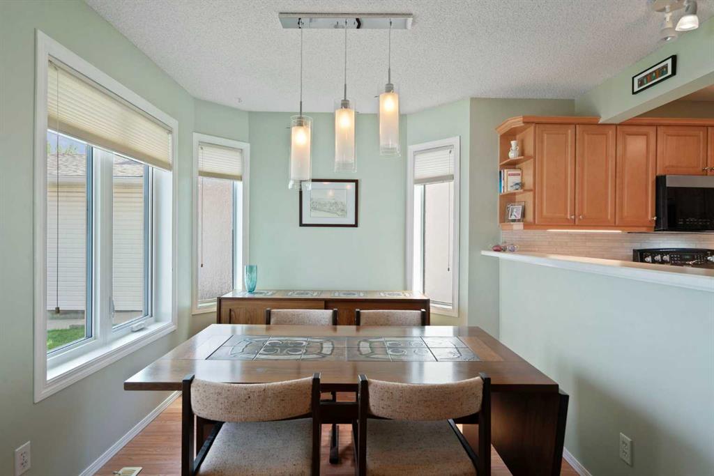 The main floor boasts a bright, upgraded kitchen with a sunny breakfast nook, flowing seamlessly into a spacious living room complete with a cozy gas fireplace. Patio doors lead to a deck—ideal for relaxing or entertaining. A convenient 2-piece bathroom completes the main level.