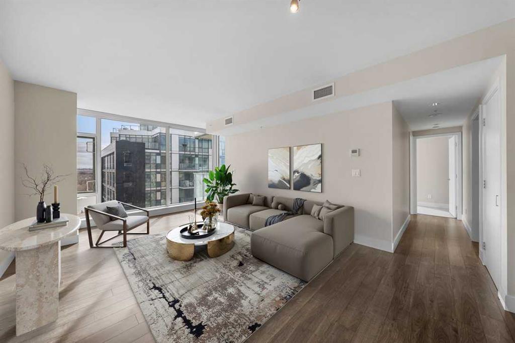 Welcome to Evolution in East Village, where luxury, convenience, and lifestyle meet. Perched on the 15th floor, this stunning 2-bedroom, 2-bathroom residence offers 917 sq. ft. of stylish living space plus an expansive 170 sq. ft. balcony, your front-row seat to gorgeous views of the Bow River, Calgary Tower, and St. Patrick’s Island.