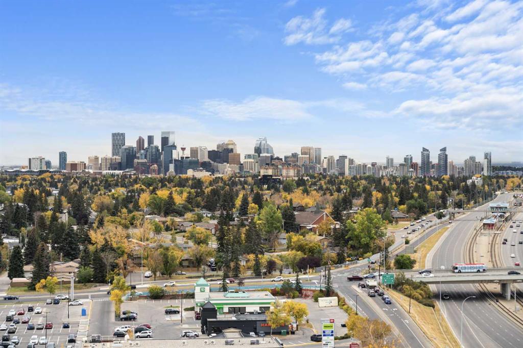 Welcome to University City, where contemporary sophistication meets effortless urban living. This exceptional east-facing residence showcases brand new luxury vinyl plank flooring and a freshly painted interior, offering a modern, move-in-ready space that exudes style and comfort. Capturing sweeping panoramic views of downtown Calgary through impressive floor-to-ceiling windows, this bright and inspiring condo is bathed in natural light throughout the day. Thoughtfully designed, the open-concept layout showcases a modern eat-in kitchen adorned with granite countertops, stainless steel appliances—including a newly replaced microwave hood fan—and abundant cabinetry that transitions seamlessly into living area, perfect for entertaining or unwinding against a backdrop of city lights. The spacious primary bedroom offers a serene retreat, complemented by a conveniently appointed 4-piece bathroom, central air conditioning, and in-suite laundry featuring a newer washer and dryer (replaced just last year). Enjoy the convenience of titled underground parking, an assigned storage locker, and exclusive access to a fully equipped fitness centre and secure bike storage. Perfectly positioned steps from Brentwood C-Train Station, the University of Calgary, Foothills and Children’s Hospitals, and an array of shops, restaurants, and major commuter routes, this residence embodies the best of contemporary city living. Short-term rental friendly and move-in ready, this immaculate condo presents a rare opportunity for both discerning homeowners and savvy investors alike. Quick possession available—your urban lifestyle awaits!