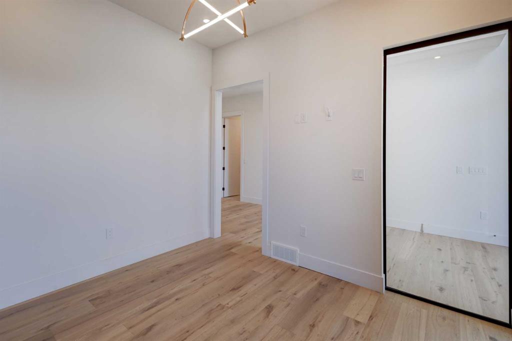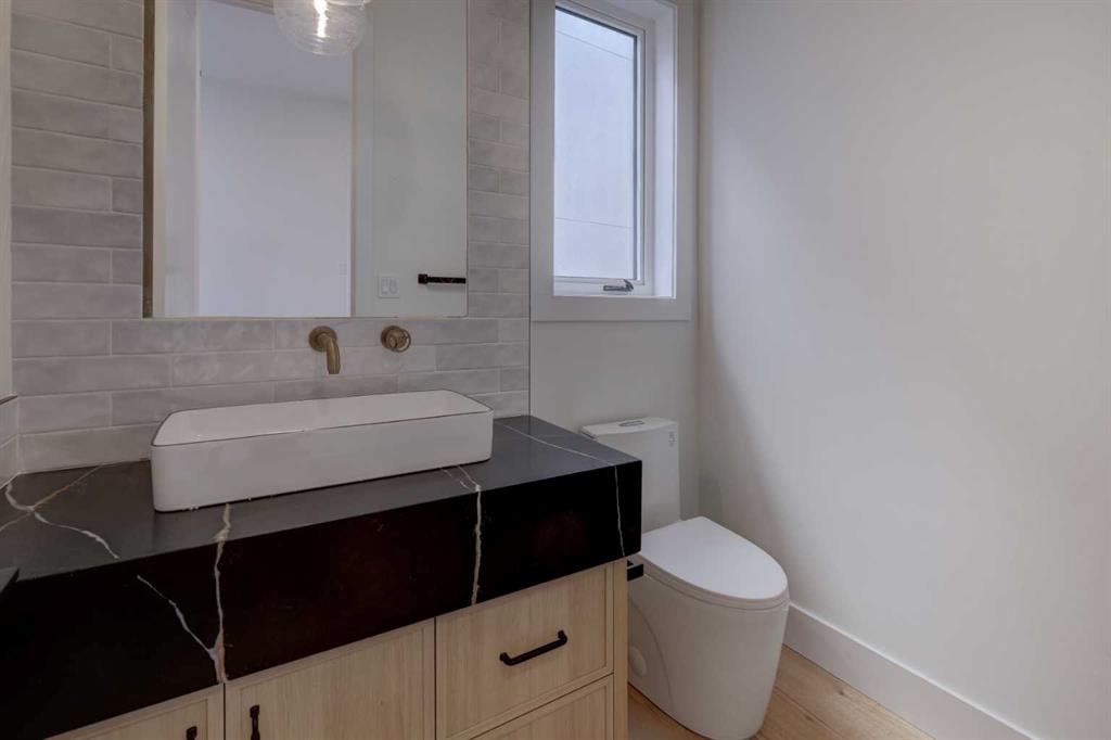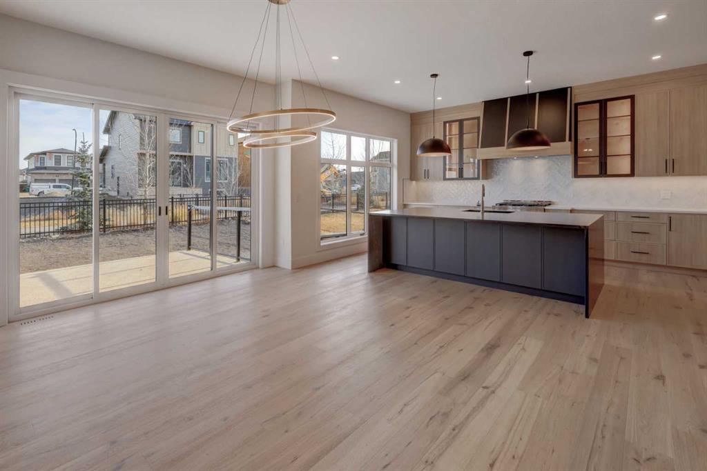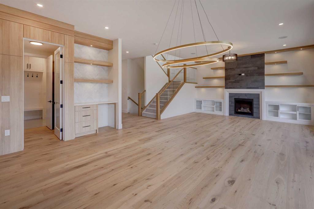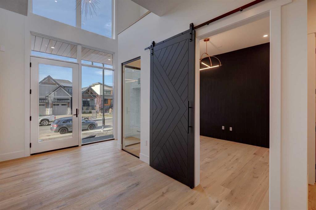 The main floor offers 10’ ceiling, engineered hardwood flooring, a spacious and inviting entryway, an office with glass features and custom finishes, and a large living room featuring a cozy gas fireplace and built-in shelving. The elegant dining area opens onto a generous sized deck with bbq gas line, perfect for entertaining. The gourmet kitchen is a chefs dream, complete with a waterfall island, built-in stainless steel appliances, quartz countertops, and a walk-through pantry. You will also find a large mudroom and a convenient powder room on this level.