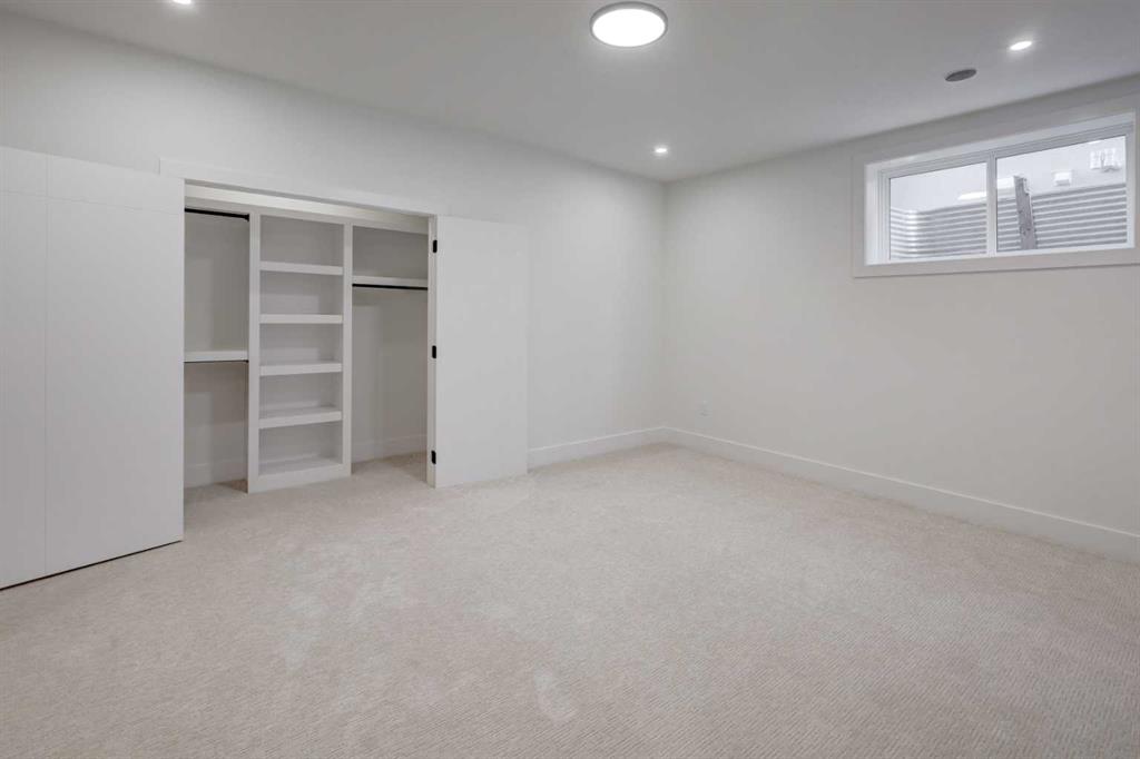 Upstairs, you are welcomed by a cozy loft area with custom built book shelf and a thoughtfully designed laundry room with a sink and lots of storage space. The luxurious primary suite includes a spacious walk-in closet and a spa-inspired ensuite with a custom walk-in steam shower, in floor heating, dual vanities and a freestanding tub. There are three additional generously sized bedrooms, each with custom-built closet shelving. One bedroom features its own ensuite, while a well-appointed main bathroom serves the other two.