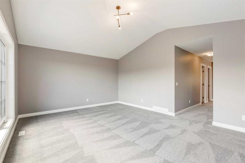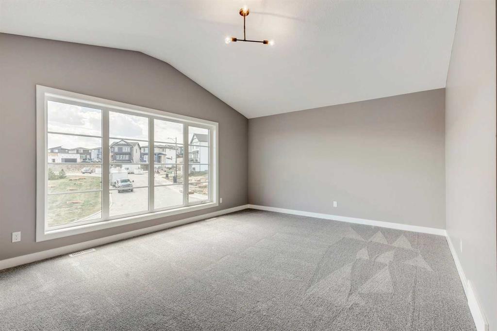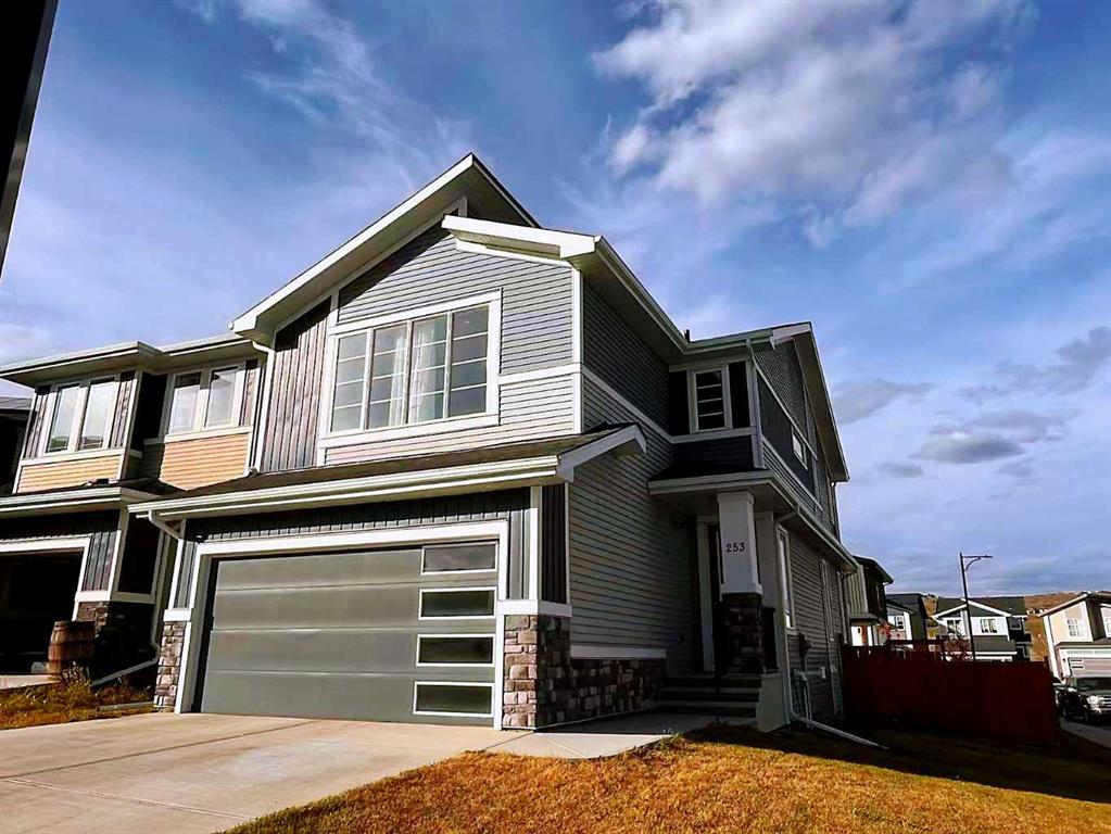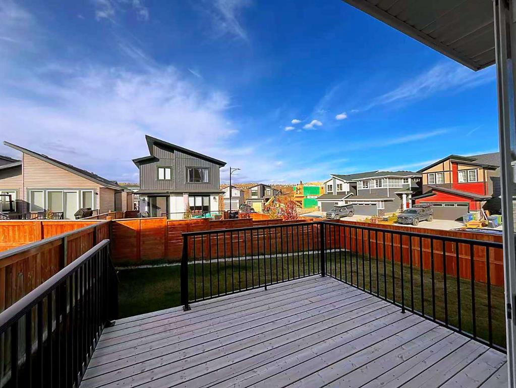 Please enjoy a virtual tour of this immaculate and beautifully designed home, ideally situated in one of Cochrane’s most convenient and sought-after neighbourhoods! Located on a large corner lot directly across from central Reindeer Park, this spacious 3-bedroom, 2.5-bath home offers over 2,000 sq ft of stylish and comfortable living space—perfect for larger or upscaling families. From the moment you step through the grand 8' front door, you'll be greeted by soaring 9' ceilings, oversized windows, and gleaming hardwood floors that flow throughout the foyer, hallway, great room, kitchen, and nook—creating a warm and elegant atmosphere. The open floor plan enhances the sense of space and flow, ideal for both everyday living and entertaining. The stunning kitchen features dual-colour quartz countertops and cabinetry, a tiled walk-through pantry connecting to the mudroom, stainless steel appliances including a self-cleaning gas range, a built-in microwave, and a dishwasher. A spacious great room anchored by a sleek Napoleon Alluravision fireplace adds a cozy yet modern touch. Upstairs, the generous master bedroom includes a luxurious 5-piece ensuite with dual quartz vanities, undermounted sinks, a deep soaker tub beneath a bright window, and an oversized tiled shower. A large, separate walk-in closet provides ample space. The upper floor also boasts a forward-facing bonus room with a dramatic two-sided vaulted ceiling, two additional good-sized bedrooms with double-door closets, a main bath with quartz countertops, and a bright upper-floor laundry room with linen storage and tiled flooring. This home sits on a quiet street in a family-friendly area, less than 5 minutes from elementary, junior high, and high schools, and under 8 minutes to grocery stores, parks, coffee shops, and restaurants. With easy access to downtown Calgary (just 40 minutes away) and the Tuscany LRT station (only 25 minutes away), convenience is at your doorstep. Beautiful, elegant, and functional—this home has it all. Book your private showing today!