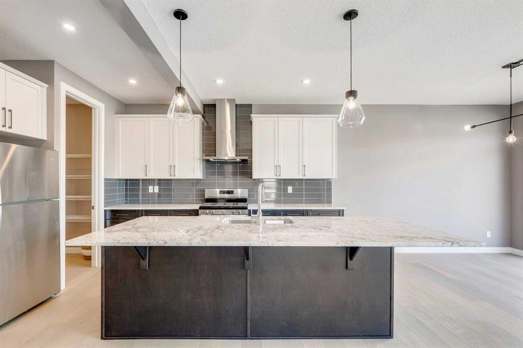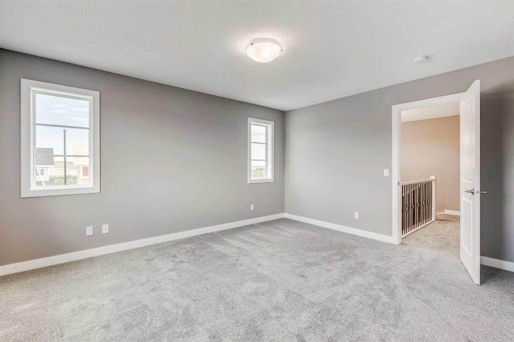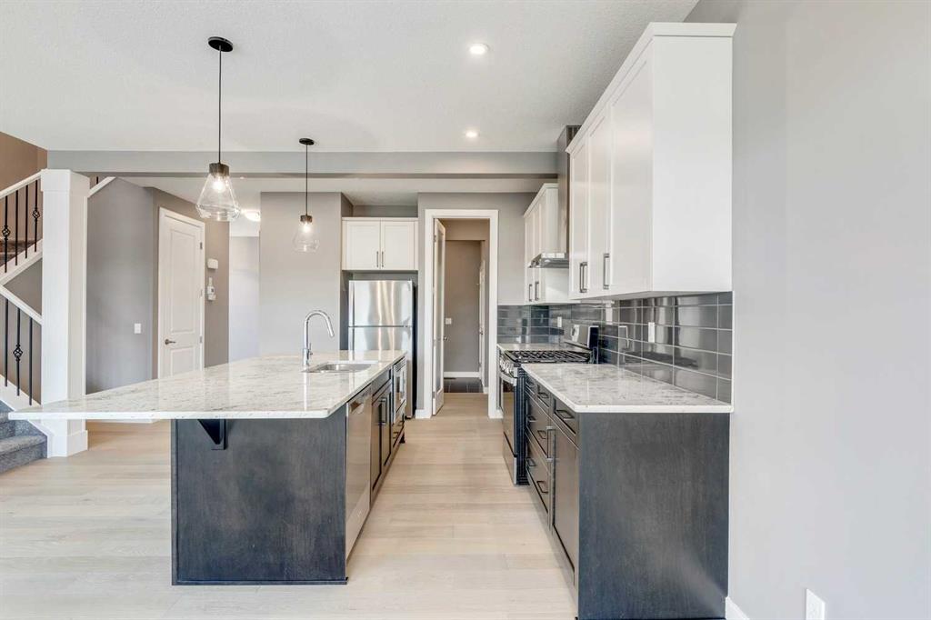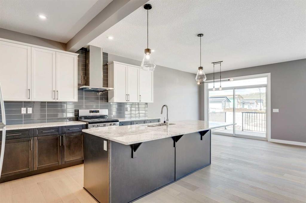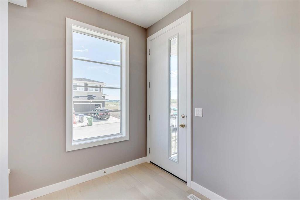 Please enjoy a virtual tour of this immaculate and beautifully designed home, ideally situated in one of Cochrane’s most convenient and sought-after neighbourhoods! Located on a large corner lot directly across from central Reindeer Park, this spacious 3-bedroom, 2.5-bath home offers over 2,000 sq ft of stylish and comfortable living space—perfect for larger or upscaling families. From the moment you step through the grand 8' front door, you'll be greeted by soaring 9' ceilings, oversized windows, and gleaming hardwood floors that flow throughout the foyer, hallway, great room, kitchen, and nook—creating a warm and elegant atmosphere. The open floor plan enhances the sense of space and flow, ideal for both everyday living and entertaining. The stunning kitchen features dual-colour quartz countertops and cabinetry, a tiled walk-through pantry connecting to the mudroom, stainless steel appliances including a self-cleaning gas range, a built-in microwave, and a dishwasher. A spacious great room anchored by a sleek Napoleon Alluravision fireplace adds a cozy yet modern touch. Upstairs, the generous master bedroom includes a luxurious 5-piece ensuite with dual quartz vanities, undermounted sinks, a deep soaker tub beneath a bright window, and an oversized tiled shower. A large, separate walk-in closet provides ample space. The upper floor also boasts a forward-facing bonus room with a dramatic two-sided vaulted ceiling, two additional good-sized bedrooms with double-door closets, a main bath with quartz countertops, and a bright upper-floor laundry room with linen storage and tiled flooring. This home sits on a quiet street in a family-friendly area, less than 5 minutes from elementary, junior high, and high schools, and under 8 minutes to grocery stores, parks, coffee shops, and restaurants. With easy access to downtown Calgary (just 40 minutes away) and the Tuscany LRT station (only 25 minutes away), convenience is at your doorstep. Beautiful, elegant, and functional—this home has it all. Book your private showing today!