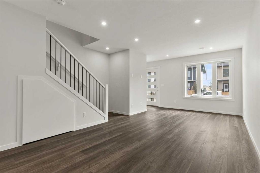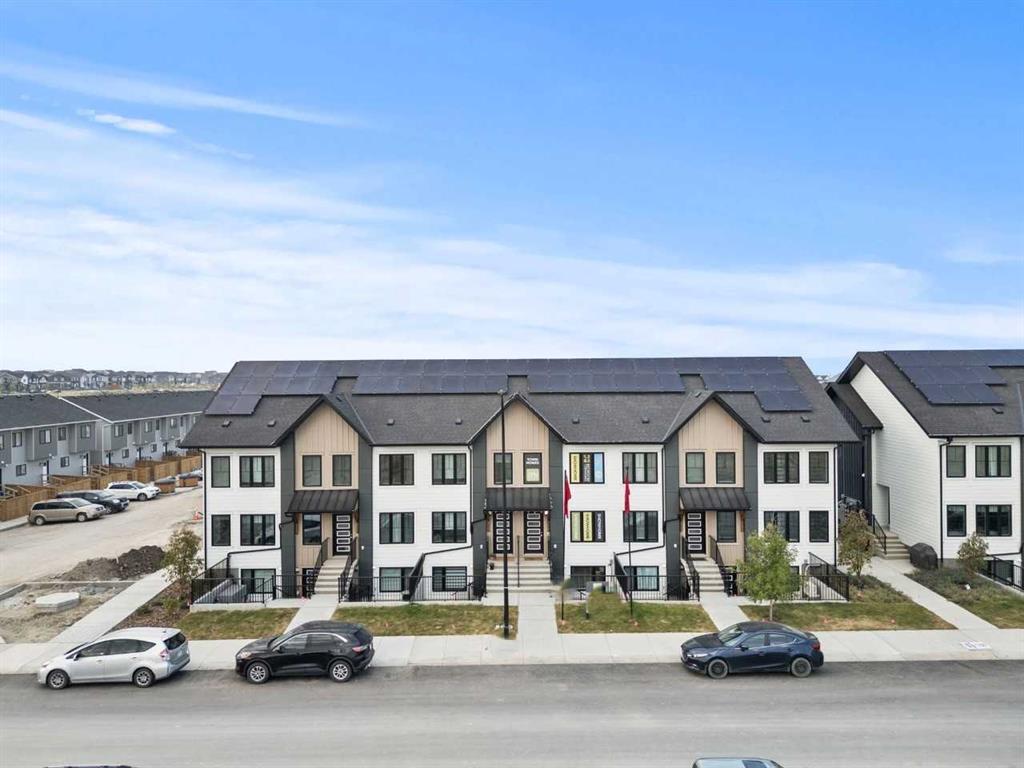 Ambrosia at ZEN Livingston – Offering 1,086 sq ft of thoughtfully designed living space, this 2 BED, 2.5 bath home features TRIPLE-PANE windows, advanced insulation, and a rough-in for solar panels. The OPEN CONCEPT main floor showcases Cicero Luxury VINYL PLANK flooring, pot lights with knock-down ceilings, and a BRIGHT LIVING AND DINING area that flows into your BACKYARD that is FULLY FENCED, perfect for those with kids, pets or wanting to enjoy some privacy - complete with BBQ GAS LINE, landscaping, and irrigation. The modern kitchen features white QUARTZ COUNTERTOPS and a 6-piece Whirlpool appliance package. Upstairs, you'll find two spacious bedrooms including a primary bedroom with an ensuite bathroom, and upstairs laundry. Enjoy HARDIE BOARD siding (hail/fire-resistant), and be part of a vibrant community just steps from the Livingston Hub with splash park, rink, courts & more!. Photos are representative.