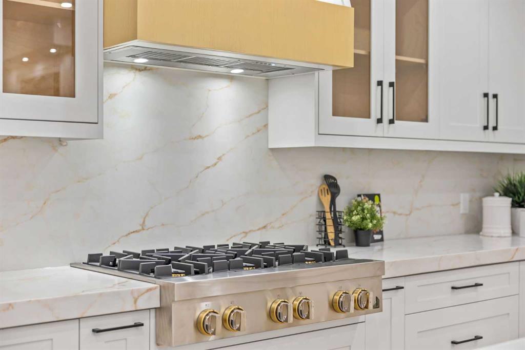 Brand-New 4900+ Sq Ft Custom Build in Varsity—Facing Green Space, Backing Treelined Pathways, and Built to the Highest Standards. This is the home Varsity has been waiting for — a fresh, full-scale luxury build on a flat, pie-shaped lot that faces onto open green space and backs directly onto the treelined pathway system. With over 4,900 sq ft, this home offers the perfect balance of thoughtful design, uncompromising finishes, and unbeatable location. From the moment you walk in, you feel the volume and elegance: 9’ ceilings on all three levels, wide-plank engineered hardwood floors, clean lines, custom feature walls, and natural light pouring in from oversized windows. The layout is ideal for family living, featuring 5 bedrooms (including 2 stunning primary suites), 4.5 spa-style bathrooms with heated floors, a private main-floor office, and an open-concept living/dining area built for entertaining. The heart of the home is the kitchen: JennAir appliances, a massive island, custom cabinetry, and direct access to a large deck and professionally landscaped backyard. Upstairs, a serene primary retreat features a steam shower, walk-in closet, and upper laundry. The fully finished lower level includes a home theatre, wet bar, bedroom + bath, and a second laundry room. Luxury features include: 200-amp electrical service, central A/C, built-in speakers, security camera system, heated double garage with epoxy floors and EV charger, irrigation system, and a fully fenced yard. Every detail was chosen for comfort, performance, and long-term living. Located in the heart of Varsity Village, you're steps from schools of all levels, the University of Calgary, and the shops and cafes of University District. Homes like this rarely come available—especially brand new and on a lot like this. Book your private tour today and experience the finest new construction Varsity has to offer.