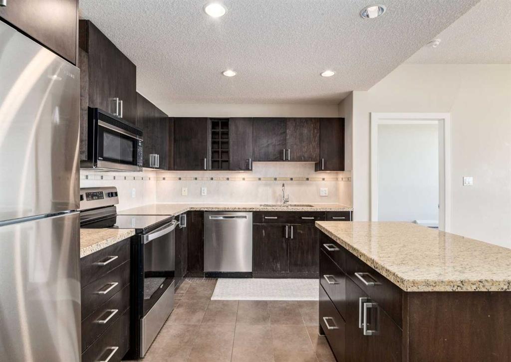 Price Reduced! Experience breathtaking views of downtown Calgary, the Bow River, and the rolling greens of Shaganappi Golf Course from this stunning 2 bed & 2 bath residence at Encore. Perched high above the city, this corner unit captures the best of modern condo living - combining style, comfort, and convenience in one exceptional package. From the moment you step inside, you’re greeted by an abundance of natural light streaming through expansive floor-to-ceiling windows that frame sweeping panoramic views. The open-concept living area offers a seamless flow between the kitchen, dining, and living spaces, creating the perfect setting for both quiet evenings and lively gatherings. Step out onto your private balcony and enjoy morning coffee or evening sunsets while taking in the dazzling city skyline and serene golf course below - a view that never grows old. The kitchen is sleek and functional, designed with rich stained maple cabinetry, granite countertops, and a full suite of black appliances. A raised breakfast bar adds both elegance and practicality, ideal for casual dining or entertaining. The atmosphere throughout is airy and inviting, with a modern yet timeless aesthetic that suits a variety of tastes and lifestyles. The primary bedroom is a private retreat with ample closet space and a beautifully appointed ensuite featuring granite counters and contemporary fixtures. A second bedroom and full bathroom provide flexible space for guests, family, or a home office. The in-suite laundry and storage area add everyday convenience, while central air conditioning ensures year-round comfort. Encore residents enjoy access to an impressive collection of amenities that elevate daily living. Relax or stay active in the large indoor swimming pool, unwind in the hot tub, or keep fit in the fully equipped gym. The building also offers a games room, bike storage, an underground storage locker and a 24-hour on-site security - all designed to make life easier and more enjoyable. Parking is effortless with your own heated underground stall, keeping your vehicle safe and warm during Calgary winters. The location is second to none - the Westbrook C-Train Station is right across the street, providing quick access to downtown and beyond. You’re also just steps from Westbrook Mall, Safeway, Walmart, cafés, and restaurants, ensuring that shopping and dining options are always close at hand. Whether you’re a professional seeking an easy commute, a first-time buyer looking for quality and value, or an investor searching for a standout property, this home offers an unbeatable combination of modern living, luxurious amenities, and unparalleled views. Every glance out the window reminds you why this address is truly one of Calgary’s best-kept secrets.