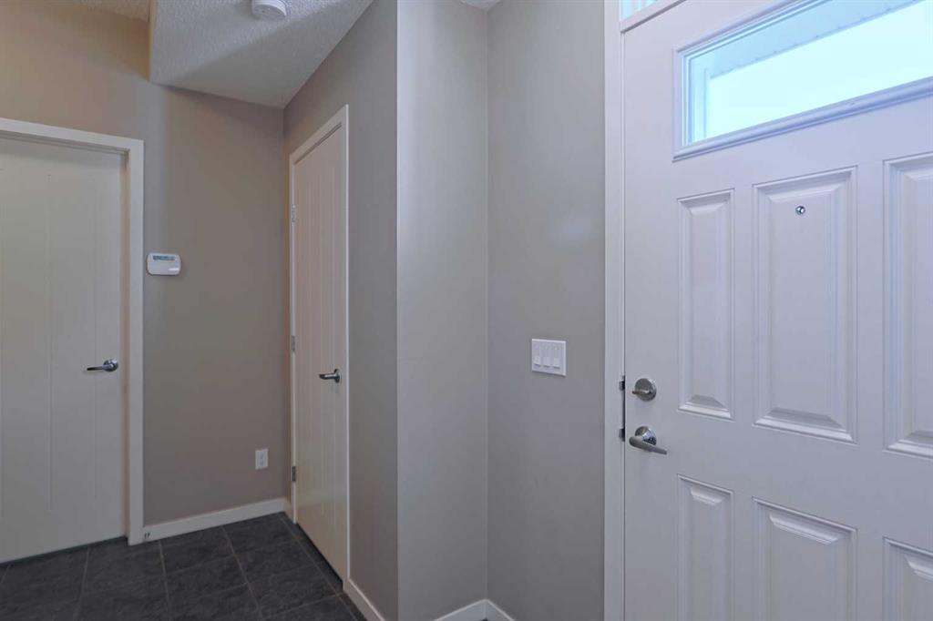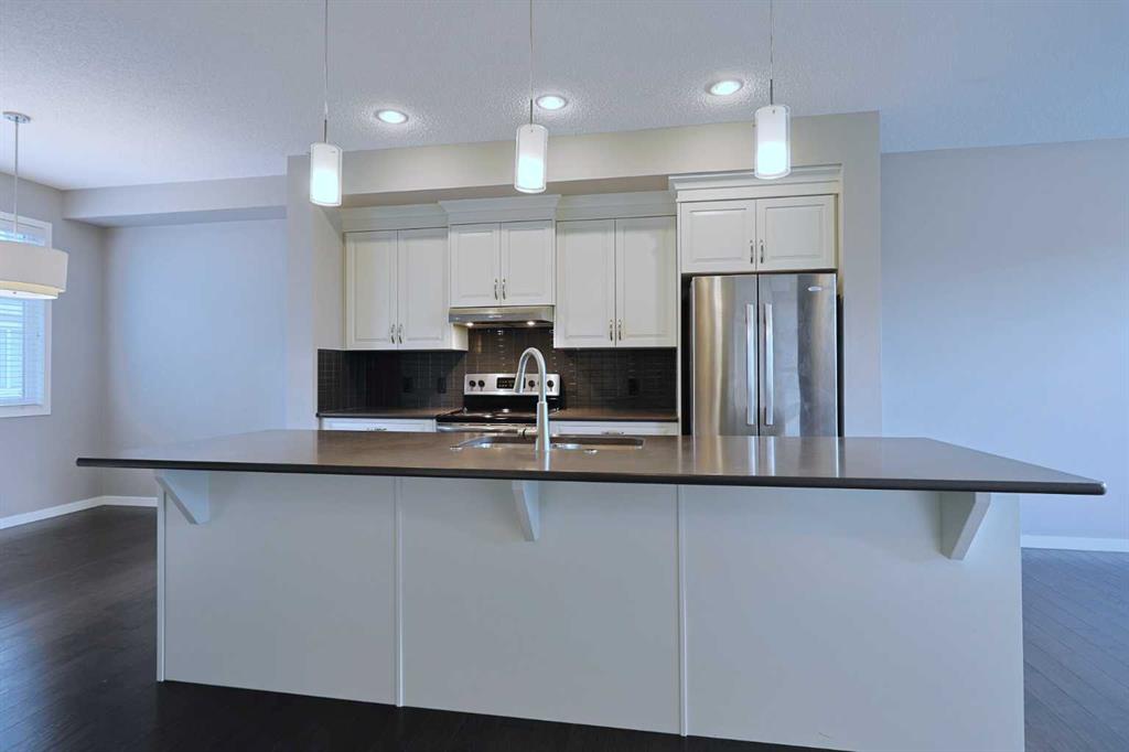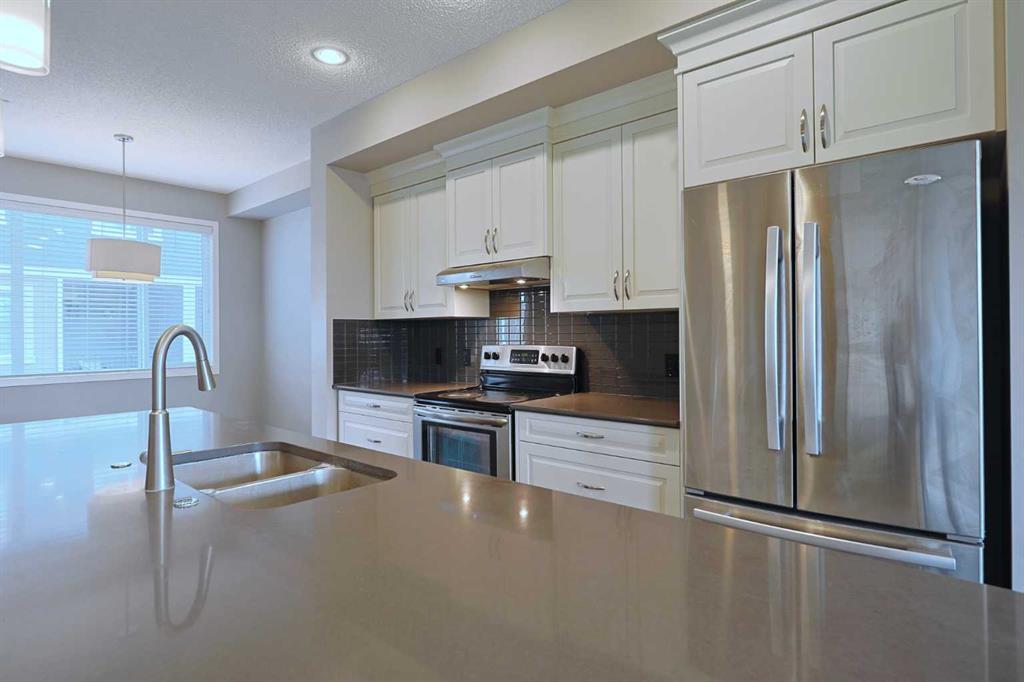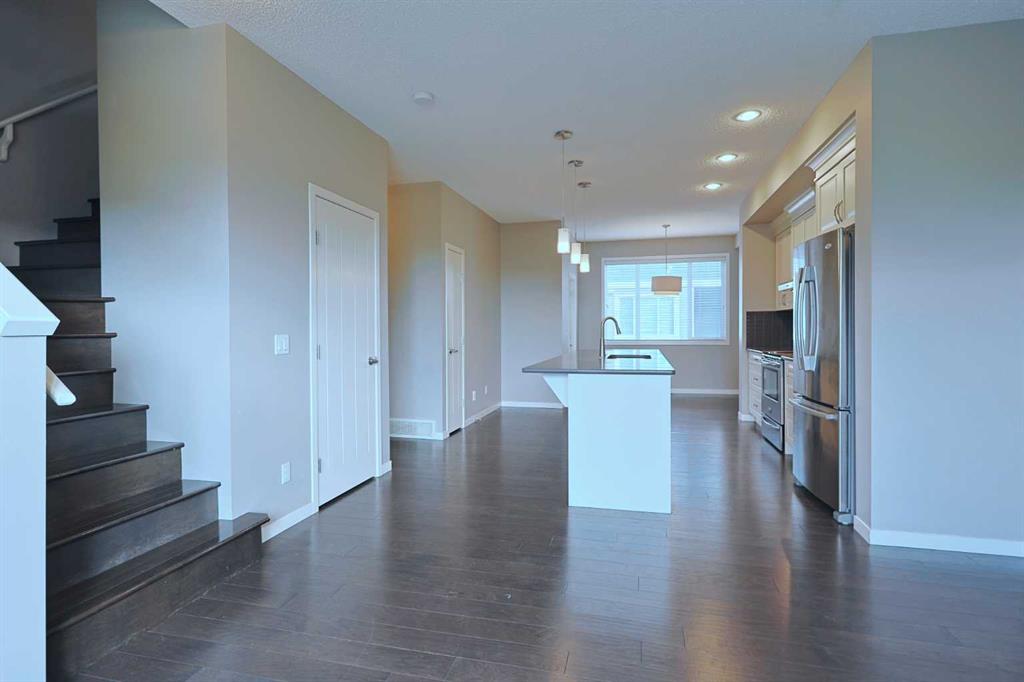 Don’t miss out on this chance to make your new home in this stylish townhome in THE ELEMENTS by Cedarglen, here in the popular family community of Panorama Hills. Available for quick possession, this fantastic 3 storey condo enjoys hardwood floors throughout, designer kitchen with quartz countertops, 2 bedrooms, 2.5 bathrooms & 2 car garage for your exclusive use. Complemented by 9ft ceilings, you'll love the open concept main living area on the 2nd floor with its rich hardwood floors & big windows, South-facing living room with alcove for your home office, dining area with access onto the covered balcony & sleek kitchen with huge centre island & Frigidaire/Whirlpool stainless steel appliances. On the top floor there are 2 big bedrooms – each with walk-in closets & full ensuites. The ensuite in the North-facing bedroom has a shower/tub combo & the South-facing bedroom has partial downtown views & ensuite with walk-in shower. Between the bedrooms is a large walk-in closet & another closet for your linens & towels. On the ground floor is the laundry/utility room with stacking Maytag washer & dryer, & access into the 2 car garage. Additional features include Hunter Douglas blinds, tankless hot water system, quartz counters in the upper level bathrooms, natural gas line for a BBQ on the balcony, central vacuum system & front patio. Monthly condo fees include grass cutting & snow removal, & pets are okay on board approval. A park with sports court & playground is walking distance from your front door, & with its prime location you’ve got easy access to area schools & shopping, Country Hills Town Centre retail complex, VIVO Centre, Deerfoot & Stoney Trails.