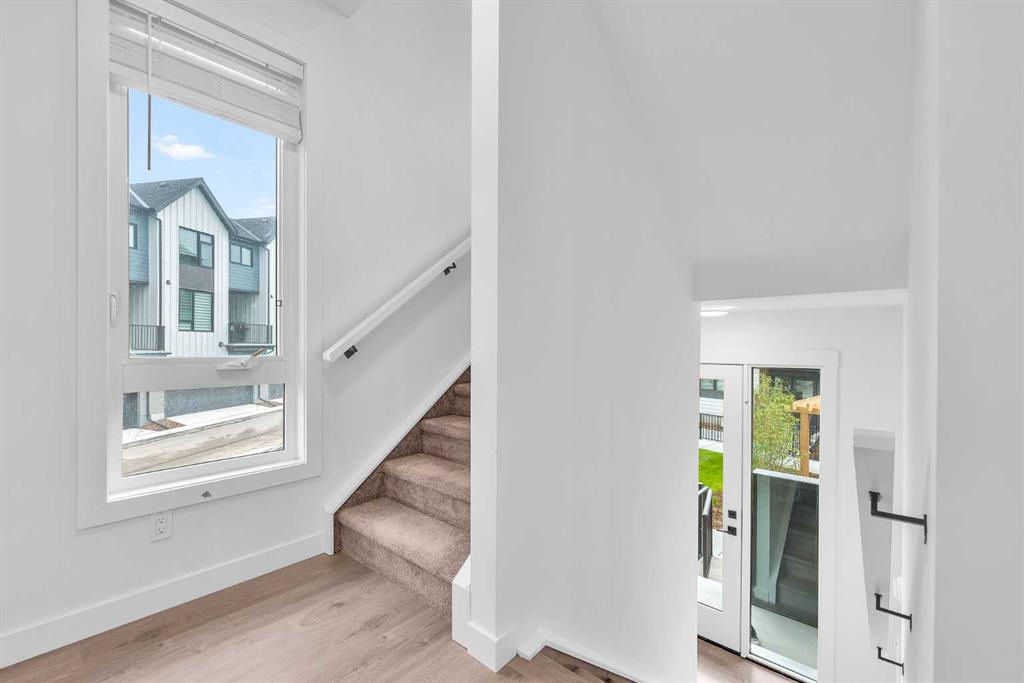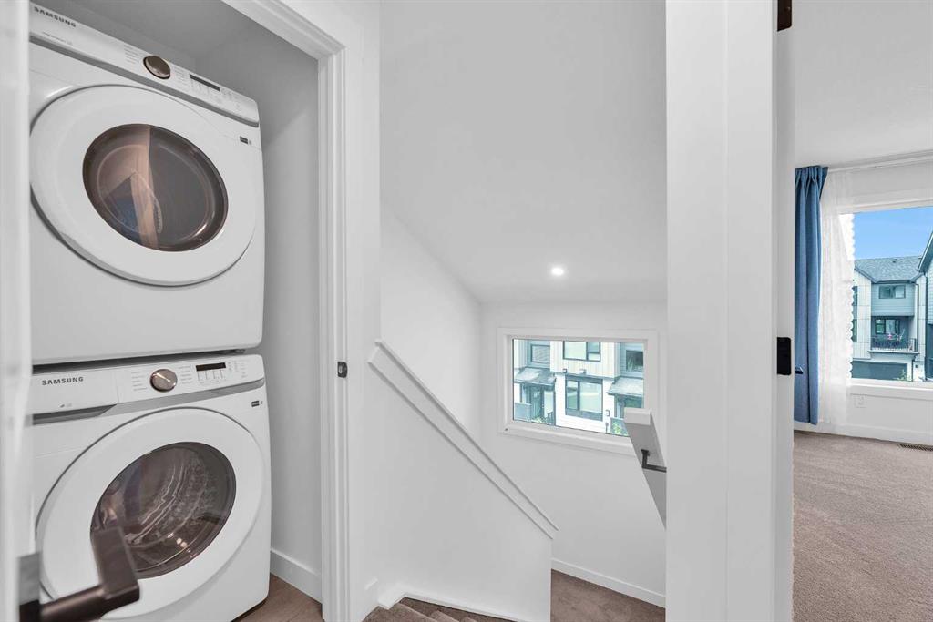 room & dinning area with access to PRIVATE BALCONY for unobstructed space that invites natural light into the space throughout the day. The functional kitchen boasts a generous size, cabinets to ceiling, quartz countertops, stainless steel appliances, and designer features. This level also has a 2PC bathroom. The upper level has a roomy master bedroom with 4PC En-suite. Two additional spacious bedrooms, and a well-appointed main bath, ensuring comfort and convenience. This unit comes with ATTACHED DOUBLE GARAGE including storage accommodate large vehicle. This Townhome is well managed with low condo fees and lots of visitor parking. Close to all amenities, shopping, transit friendly, easy access to Stoney Trail, Shaganappi Trail & Nose Hill Park. Don’t let this slip away, call to book a showing.