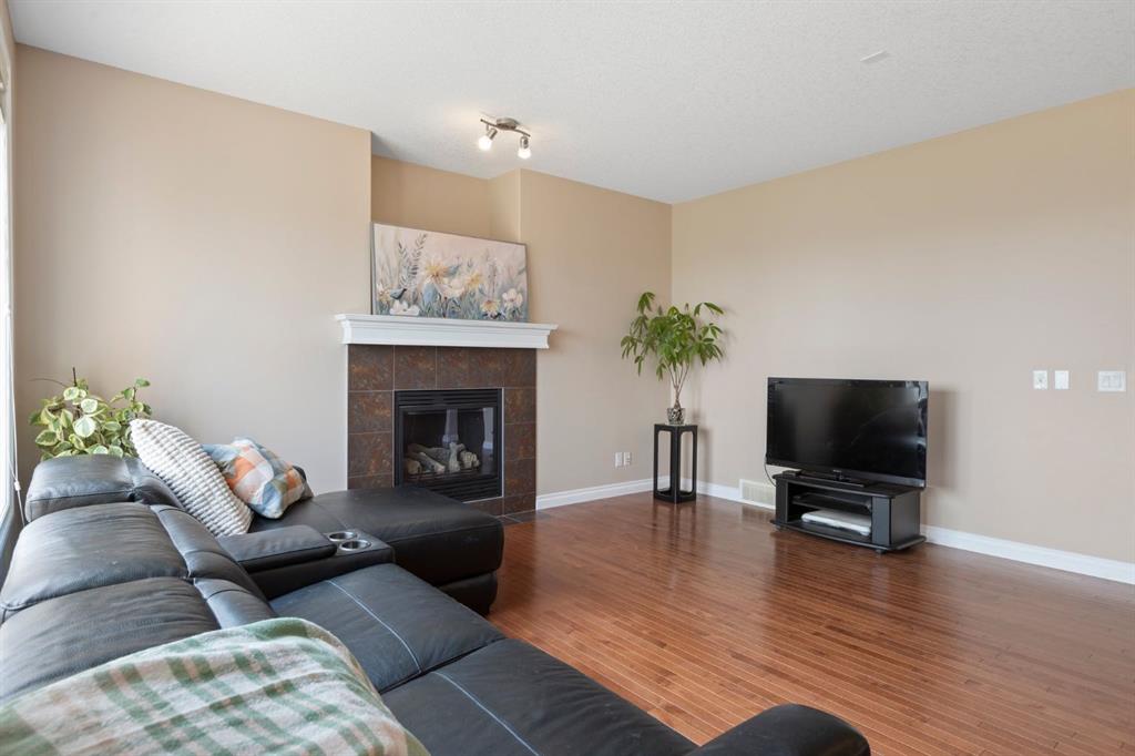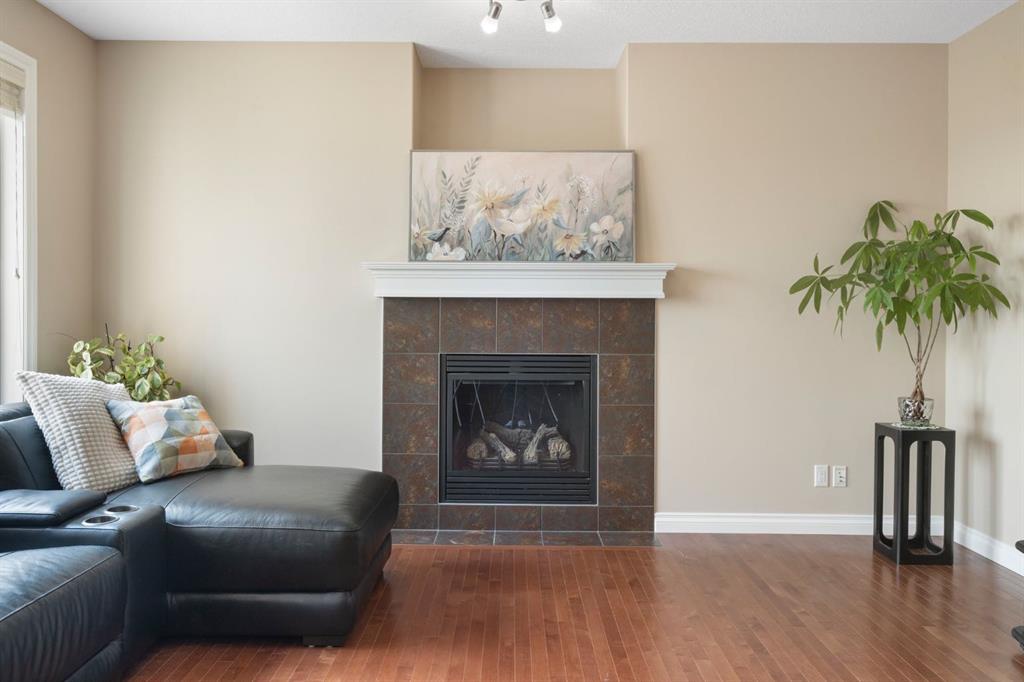 From the moment you arrive, you’ll appreciate the charming curb appeal, oversized driveway, and inviting stone-accented exterior. Inside, the bright and functional main floor showcases rich hardwood floors, a grand foyer, a front flex room — ideal for a home office — and an open-concept living area anchored by a cozy gas fireplace. The well-appointed kitchen features maple cabinetry, granite countertops, stainless steel appliances, a corner pantry, and a spacious dining area that opens onto a large upper balcony — perfect for outdoor dining and entertaining. A convenient main floor laundry room completes this level.