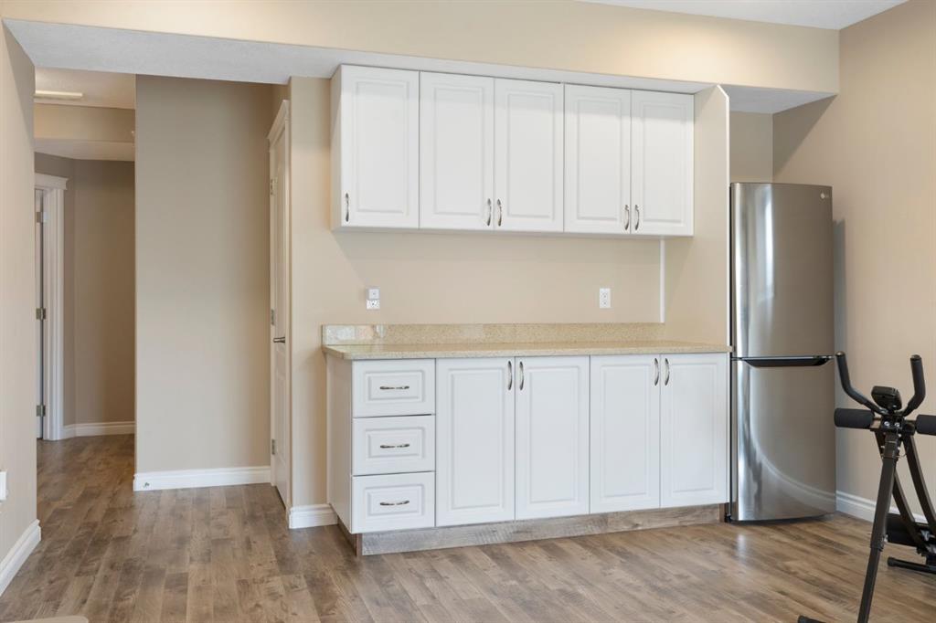 The fully finished walk-out basement expands your living space with stylish laminate flooring, a large recreation room with built-in dry bar, one bedroom, a flex room, and a full bathroom. The walk-out leads to a covered patio and a fully fenced backyard with raised garden beds — perfect for kids, pets, and gardeners alike.