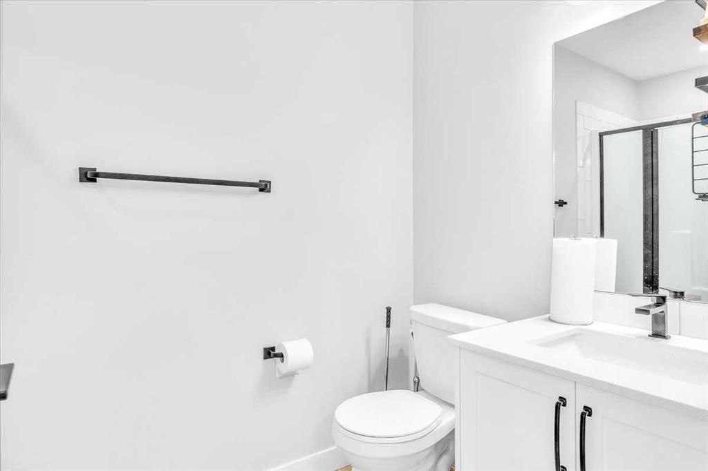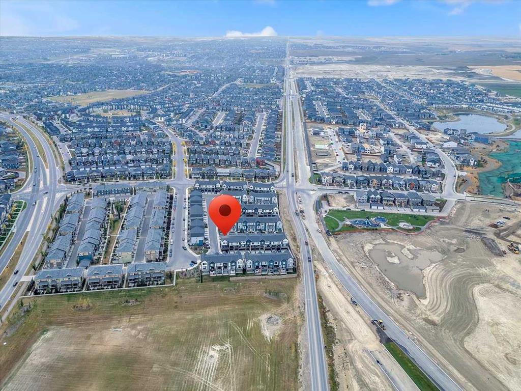 Welcome to this beautiful corner-unit townhouse in the vibrant community of Evanston, where thoughtful design meets modern convenience. With three bedrooms, 2.5 bathrooms, and a three-storey layout, this stylish home offers the perfect combination of space, function, and comfort — all in a location that puts every amenity within easy reach. Step inside to a welcoming main-floor foyer that sets the tone with its clean, modern feel and durable vinyl & tile flooring throughout. This level includes a private den with a proper door, making it perfect for working from home or hosting meetings in peace. You’ll also find a closet for coats and storage, a utility area, and direct access to the double attached garage, providing ultimate convenience for daily living. Upstairs, you’re greeted by a bright, open living space designed for both relaxing and entertaining. The kitchen shines with white cabinetry, quartz countertops, and stainless steel appliances, including a gas range for the home chef. There’s also extra power under the sink, ideal for adding a garburator or water filtration system. Elegant light fixtures, designer wall treatments, and vinyl flooring continue throughout this level, giving the space a modern, cohesive look. The dining area comfortably fits a large table, and the living room is bathed in natural light from the corner windows. Step through the sliding glass doors to your balcony with a gas line for your BBQ, making it easy to grill and entertain outdoors. A 2-piece bath completes this floor. On the upper level, the primary bedroom is positioned for privacy, featuring a 3-piece ensuite and a large closet. Two additional bedrooms share a 4-piece main bath, creating a practical setup for family or guests. The upper laundry area includes extra storage space, making household chores simple and efficient. This home was built with energy efficiency in mind, featuring a tankless hot water system and an A/C rough-in, giving you comfort and flexibility for every season, and motion detection lights in the washroom and laundry room. As a corner unit, it enjoys extra natural light and a sense of separation from neighbours. The fenced front yard is perfect for a seating area or a small garden, while the landscaped central courtyard adds extra green space and privacy. Located close to schools, parks, shopping, and dining, this home is also just minutes from Stoney Trail for quick access around the city. You’ll love being near the Carrington complex, which includes a playground and grocery stores within walking distance, providing everyday convenience just down the street, plus other playgrounds within walking distance. Beautifully maintained and move-in ready, this corner townhouse offers all the modern comforts, smart upgrades, and community connection you’ve been searching for.