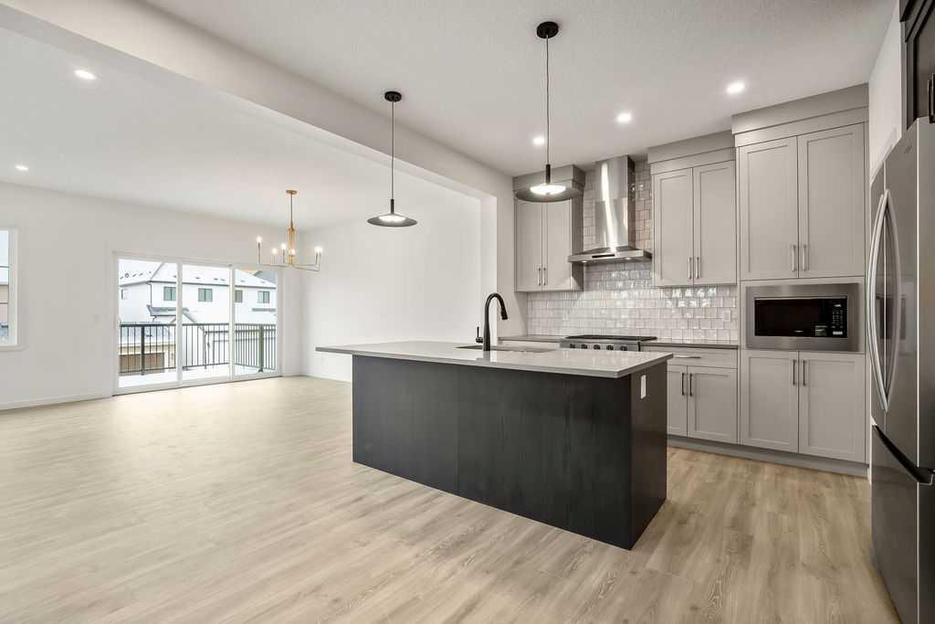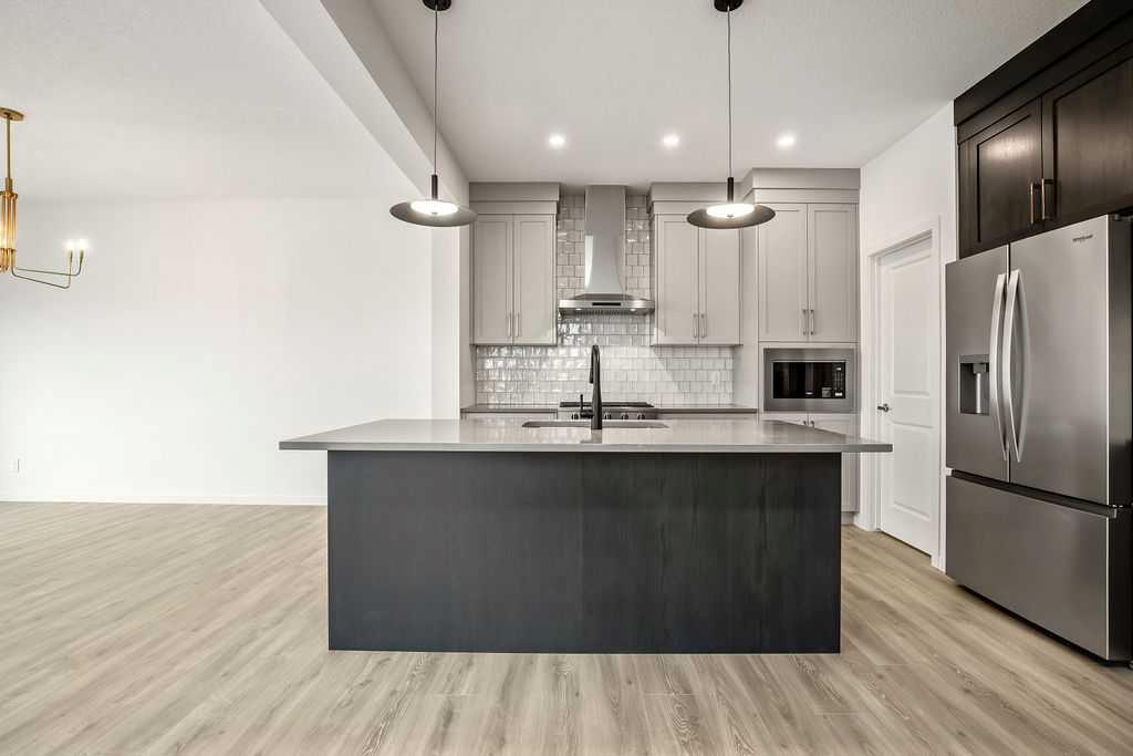 Your dream home and opportunity await! This BRAND NEW gorgeous property is situated on a traditional extra large corner lot! Offering over 2,200 sq ft above grade. As you approach you will notice the great curb appeal and stone detail. This well thought out design offers comfort and practicality. The bright main floor has hard surface flooring throughout, soaring 9' knockdown ceilings, a convenient attached garage and mudroom. The focal point of this home is the chef inspired two tone kitchen, with stunning quartz counters, timeless tile backsplash, custom slow close cabinets that reach to the ceiling, upgraded stainless steel appliances including a chimney style hood fan and a gas range. Adjacent to the kitchen is the bright dining room with extra large patio doors that open to your own private deck with a gas line and VIEWS! The dining room seamlessly connects to the living room making it ideal for entertaining. This room is flooded with natural light and showcases a fireplace centered between two windows. Completing the main floor is a private powder room by the front entrance and a well sized office for those who work from home, or as a homework zone, or a potential play room. When you head upstairs you will notice the elegant railing, more windows drawing in that natural light, and an open to below creating an airy feel. You are then greeted by a central bonus room with arch details on each side adding sophistication to the space. Two well sized bedrooms and a nicely appointed 4 piece bath with quartz counters are on the one side. Where the spacious primary retreat is on the opposite side. Offering a substantial room with a walk in closet and a spa inspired ensuite including dual sinks, quartz counters, a large soaker tub, separate tiled shower and a private water closet. A convenient upper laundry room completes this level. The WALK OUT basement with additional side entrance is a blank canvas and has plenty of potential. It is complete with all the rough ins needed for a basement suited (subject to approval and permitting by the city), including a bathroom rough in at the back, a laundry rough in for stacked laundry under the stairs, and the rough ins for a galley style kitchen on the opposite side of the stairs. This home also has two additional parking stalls at the rear of the home making it possible to have an additional double detached garage(subject to approval and permitting by the city). This home has designer lights throughout, upgraded plumbing, and the quality and craftsmanship Calbridge Homes is known for. Enjoy peace of mind with New Home Warranty as well as front and side landscaping included! Sage Hill has plenty of walking paths, scenic ravine, open greenspaces, shopping, restaurants, and easy access to major roads like Shaganappi Trail, 144 Avenue, and Stoney Trail. Schedule your private tour today!