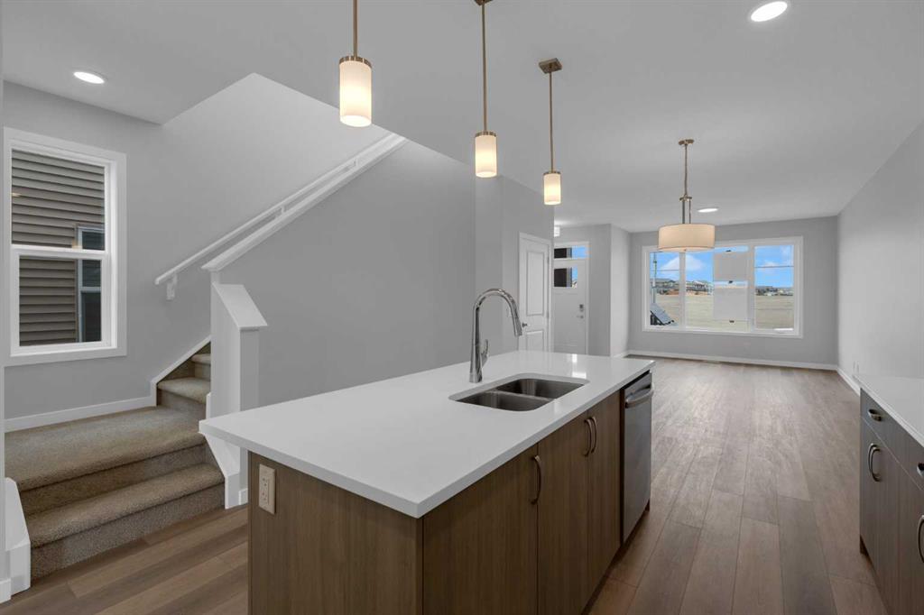 4 BEDROOMS ABOVE GRADE, WALK OUT BASEMENT that is roughed in for LEGAL 2 BEDROOM SUITE (with city permits and approvals). Introducing the COHEN: an amazing, BRAND NEW attached home by EXCEL HOMES offering 1735 SF above grade of upgraded luxury! Nestled in the vibrant Northwest community of Carrington. Step into a life of luxury and convenience with this stunning residence, where every detail has been meticulously crafted for comfort and style. Enjoy the benefits of living in an established neighborhood that brings a plethora of amenities right to your doorstep, along with swift access to major highways. Enjoy the local pathways, environmental reserve - central pergola & seating areas and mixed level playground w/basketball court, skate park & more.! The COHEN offers a sprawling 1735 square feet of thoughtfully designed living space, perfect for both families and entertaining. The open floor plan, complemented by neutral designer tones, creates a welcoming atmosphere that is both elegant and comfortable. The chef-quality kitchen stands as the heart of the home, equipped with an abundance of cabinets, pot/pan drawers, and upgraded stainless steel appliances. The expansive engineered stone countertops, a large island with seating, and a convenient pantry make it a dream kitchen for those who love to cook and entertain. The main floor also features versatile luxury vinyl plank flooring. Uniquely ON THE MAIN FLOOR, you'll find a BEDROOM & FULL 4 PCE BATHROOM. Ascend to the second level where leisure meets luxury in the large central bonus room with vaulted ceilings — ideal for movie nights and family gatherings. The primary bedroom is a true retreat, boasting a walk-in closet and a spa-like ensuite with stone vanity tops. Additionally, two more generously sized bedrooms provide ample space and easy access to the main bathroom. The convenience continues with a laundry room (w/folding counter), strategically located on the same floor. The possibilities extend into the partially developed WALKOUT basement that has separate ENTRY & ROUGH IN'S FOR a LEGAL 2 BEDROOM suite (subject to city permits and approvals)...all the electrical, drywall, utilities & plumbing rough ins are in place. You'll find a pressure treated deck w/aluminum railings accessible from your kitchen! This home includes a 20 x 20 gravel parking pad and sod to the front & backyard. Don't miss the chance to own this never-lived-in gem with quick possession available. Experience the blend of luxury, comfort, and convenience in Livingston—welcome to your new dream home at the COHEN.