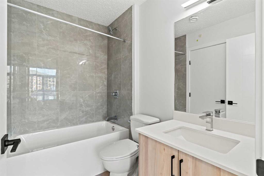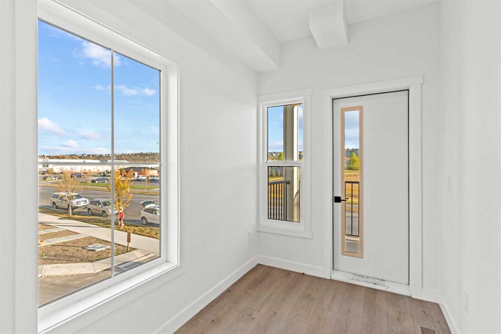 Welcome to a home where contemporary elegance meets every day comfort, coupled with an opportunity for outdoor lifestyle living. This one a kind community is your chance to have quick access to the Rocky Mountains. Stepping into the unit, you will find an open concept floorplan with 9' ceilings throughout all of the living areas, luxury wide plank flooring. Moving into the well designed kitchen, you will find quartz stone countertops with soft close drawers, upgraded stainless steel appliances, as well as an overhanging kitchen island for extra counter space. Continuing further into the unit, you will find 3 bedrooms and 2 bathrooms with contemporary plumbing fixtures, stoned tiled flooring, and quartz countertops. You will also have a titled parking stall. Sit back and relax with your sun filled waterfront views on your private deck and enjoy your evenings walking through the garden pathways and parks nearby. Being in prime location, the Greystone community will be surrounded by various large retailers including one of Canada's flagship Co-op grocery store locations - future of live, work, play in Western Canada's #1 fastest-growing region. Walking distance to Ocgrow's Greystone Place Commercial retail centre - with all of your favourite restaurants, coffee shops and amenities nearby. The Spray Lakes Sports Centre is just minutes away, pickle ball courts across the street, and the accessibility to the Rocky Mountains provides you with a great opportunity for your outdoor adventures. Don't miss out on your chance to be a part of Cochrane's fast paced growth in beautiful community of Greystone.
