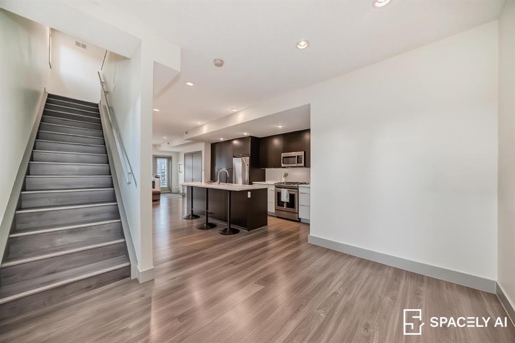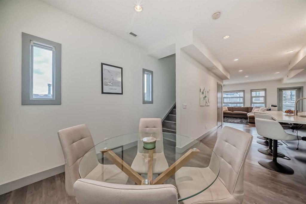 NEW IMPROVED PRICE!! Rare top floor, 2 storey, end unit condo with South exposure located in the highly desirable community of South Calgary. Inside you'll find the main floor is bright and open with 9' ceilings, a modern kitchen with a large island, quartz countertops, upgraded stainless steel appliances including a gas stove and plenty of cupboards & countertop space. Dining room and a half bath complete the main floor. On the upper level there are 2 good sized primary bedrooms. The first primary bedroom has a 5pc ensuite, a huge walk-in closet, and flex space off of the balcony. The second primary bedroom also has its own 4pc ensuite bathroom and walk-in closet. The in-suite laundry completes the upper level. This unit has 2 amazing South facing balconies, one on each level. The parking is a titled stall which is securely located in the buildings heated, underground parkade. This is a well managed, quiet complex with only 8 units, situated on an ideal location with close proximity to trendy 17th Ave and popular Marda Loop. A great investment perfect for downtown professionals seeking hassle free lifestyle with amazing location and value. Take advantage of this exceptional buy. Shows 10 out of 10!
