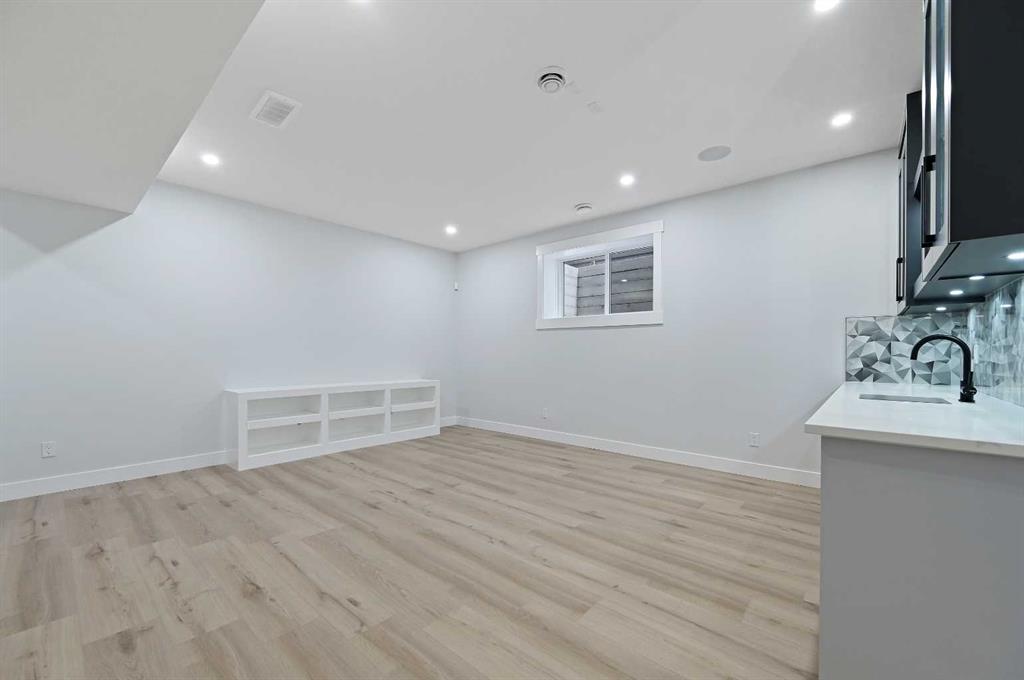 The upper level showcases a gorgeous primary retreat with a sun-tunnel-lit walk-in closet, spa-inspired ensuite with freestanding tub, floating double vanity, and custom tiled shower. Two additional bedrooms each come with their own walk-in closets, along with a 3-piece bathroom and a full laundry room with sink. Downstairs, the fully developed basement features 9’ ceilings, large windows, a spacious recreation area, wet bar, a fourth bedroom with walk-in closet, and a 4-piece bathroom—perfect for guests or multi-generational living.