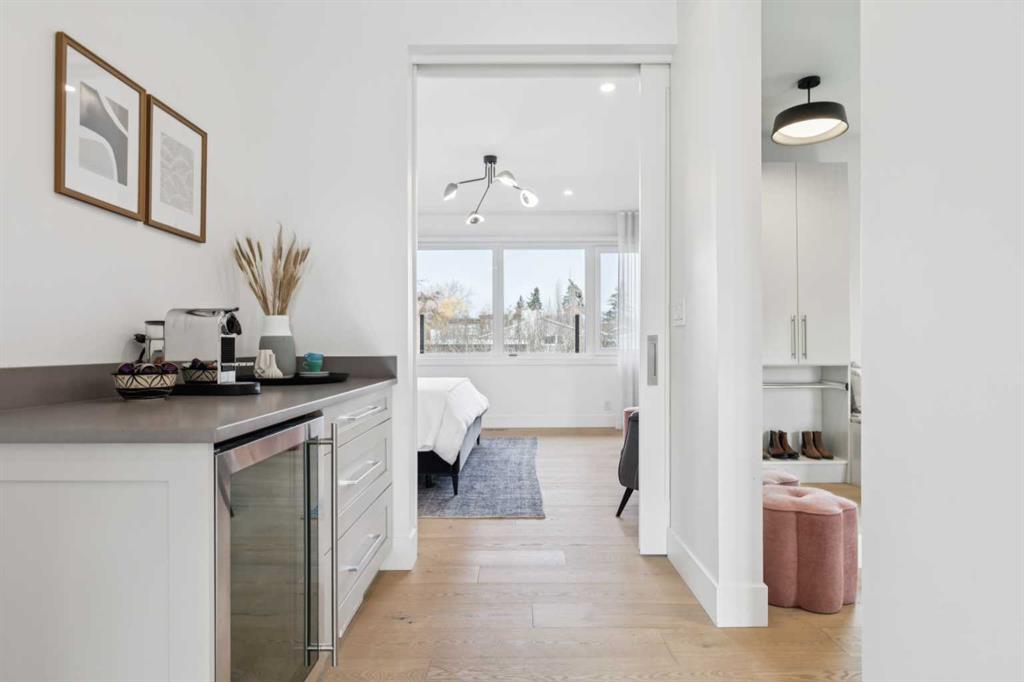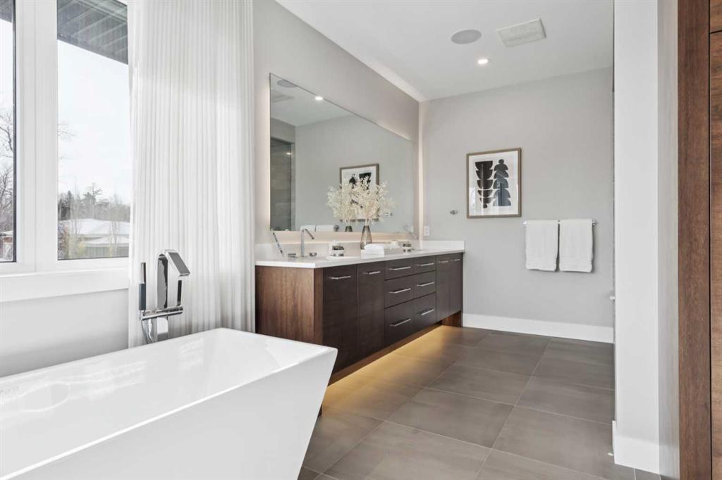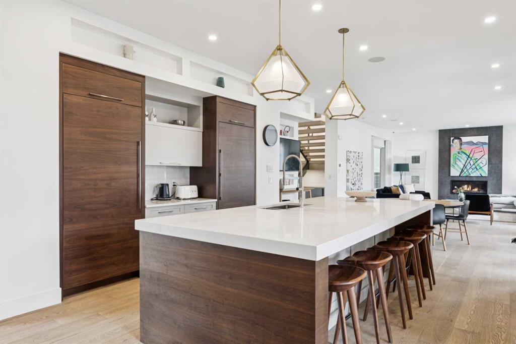 Fabulous Frank Lloyd Wright inspired west-coast-modern family home. 70’ wide elevated and professionally landscaped lot. Built in 2018 with 5835 square feet of total development, 5 bedrooms, 7 baths, 5 terraces and an oversized triple attached garage. Stunning feature staircase with steel frame and hardwood treads. Gorgeous white-oak-plank hardwood throughout 3 levels of the home. Open plan main with 10' ceilings and huge windows. North and south exposures plus fireplace in the Great Room…open to the outstanding and expansive chef's kitchen with a full set of Miele appliances, endless cabinetry, huge island, walk-in pantry and casual dining space. Main dining room with storage and its own terrace. Private office has a wall of built-ins. 4 bedrooms on the second level, all with ensuite baths and walk-in closets. Dream primary suite is over 700 ft2 with a private terrace, coffee station, vast walk-in closet and sparkling 5-piece spa-bath complete with steam and freestanding soaking tub. Upper family room has neighbourhood vistas, terrace and a 3-piece bath. Fully developed lower level with sprawling family-media room with wet bar, 5th bedroom, bath and storage. Well-organized mudroom connects to the triple garage with epoxy-coated floor and heated driveway. Large fully fenced rear yard with architectural-concrete perimeter beds, grass playspace and covered terrace. Britannia is one of the absolute best inner-city neighbourhoods with parks, a playground, access down to the river valley and pathway system, proximity to top schools, a quick drive to the downtown core and walking distance to Britannia Village which has restaurants, groceries, wine store, coffee shop and many other services and amenities. A must see!