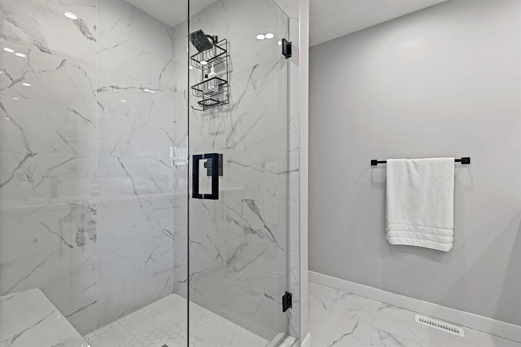 Upstairs, the primary suite enjoys sweeping views of Springbank Hill and features a walk-in closet plus a serene ensuite with dual sinks. Two additional large bedrooms, a full bathroom, and a convenient upper-floor laundry room complete the level.
