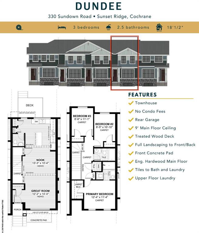 Excellent Value in Sunset Ridge... Introducing the Dundee by Douglas Homes Master Builder... a beautifully designed west-facing townhouse offering 3 bedrooms, 2.5 bathrooms, a full basement, and a double detached garage. With no condo fees and complete front-and-back landscaping, this home blends modern comfort with practical, low-maintenance living.