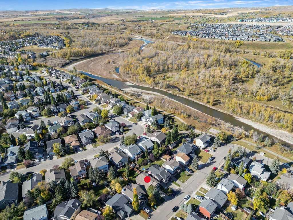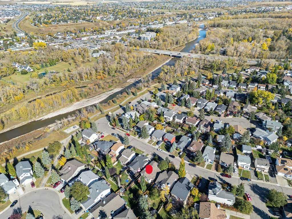 **Huge price reduction**Welcome to newly renovated 51 Hunters Crescent. You could have your big beautiful Christmas tree in the vaulted ceiling living room! This stunning four level split home is hidden in a mature neighbourhood with large trees, park, walking paths along the river, close to Big Rock elementary school and shopping. The home has been beautifully renovated throughout. The new kitchen offers plenty of custom cabinets, all new appliances including a chefs dream gas range, farm style sink, kitchen island for prepping and built in wine fridge. The main floor also has a large living/dining space filled with natural light from all the new triple pane windows and high vaulted ceiling. Just down from the kitchen you have a cozy family room with your gas fireplace for those warm movie nights. This floor also offers your brand new laundry room with new washer and dryer, a two piece bathroom and large mud room. Downstairs offers a large flex space that could be a bedroom (window may or may not be egress), games room, office, learning area so many options. In the mechanical room there is a huge storage space , brand new furnace and brand new tankless water heater offering hot water on demand. Your upper floor offers a large primary with a brand new three piece ensuite. Fully walk in shower with the most stunning tile. You also have another four piece bathroom and two more large bedrooms. Outside you can enjoy your large covered deck, there is also wiring for a hot tub, and mature backyard space for family gatherings. As for the location of this hidden gem. You are steps aways from an elementary school, a playground and breathtaking walking paths along the river. Perfect for those fall family photos. Come and fall in love with this move in ready family friendly home.
