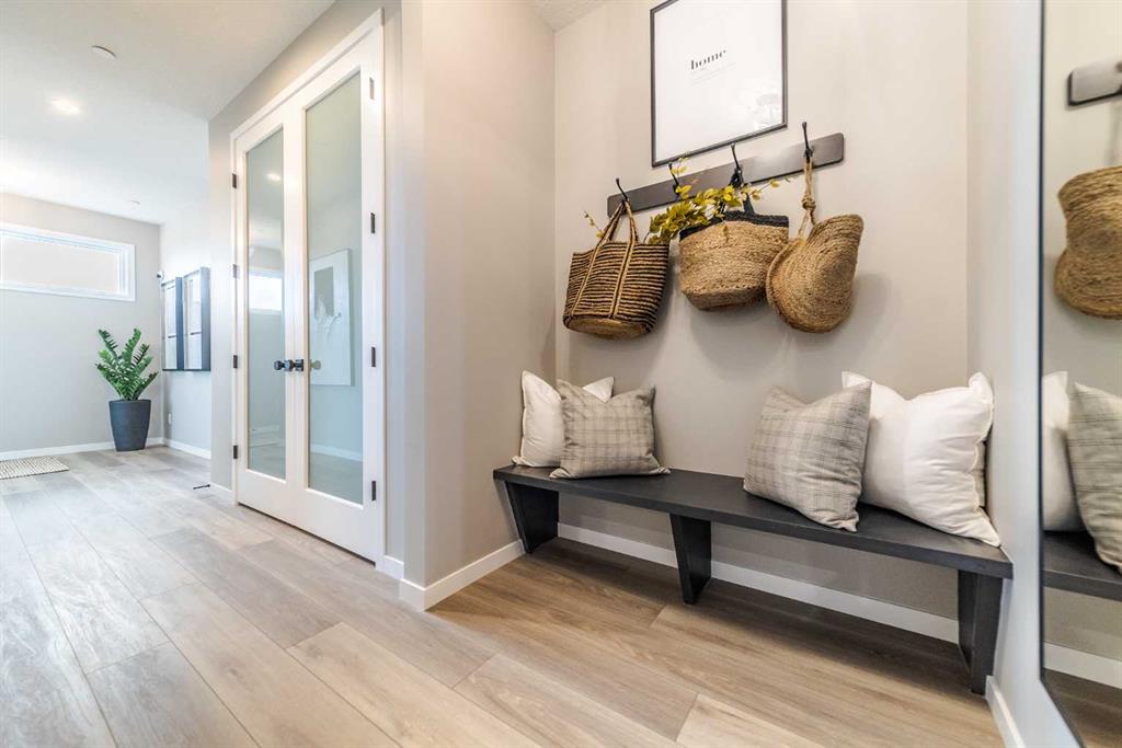 FORMER SHOW HOME ALERT | Nestled in the vibrant, family-friendly community of Livingston, this former Cedarglen Homes show home is the definition of style, function, and craftsmanship. Offering a fully developed legal basement suite, and designer upgrades at every turn, this home is truly one of a kind. Step inside and immediately feel the warmth and sophistication that define this property. The main floor features an open-concept layout with soaring 8' interior doors, glass railing, and luxury vinyl plank flooring that flows seamlessly throughout. The living room steals the spotlight with a vertical shiplap feature wall framing a tiled electric fireplace, creating the perfect blend of modern and cozy. The chef’s kitchen is both stunning and functional, showcasing quartz countertops, two-tone cabinetry, a large central island, and a full working kitchen for extra prep and storage. The dining nook opens onto your oversized deck, perfect for hosting summer BBQs or enjoying quiet mornings in the sun. A main floor bedroom and full bath offer flexibility for guests, an office, or multi-generational living. Upstairs, the design continues to impress. The primary retreat is a true sanctuary featuring a spa-inspired ensuite with a custom tiled shower, soaker tub with tile ledges, and dual sinks, all finished with quartz countertops. The walk-in closet connects directly to the laundry room, making everyday life effortless. Two additional bedrooms each feature their own walk-in closets, and a bonus room plus a built-in desk area provide the perfect spaces for work, play, or relaxation. The fully finished legal basement suite offers even more possibilities - complete with a separate kitchen, living area, bedroom, and full bathroom. This space is ideal for extended family, guests, or rental income. Every inch of this home reflects thoughtful design and quality finishes from upgraded hardware and lighting to its seamless blend of comfort and modern flair. Outside, enjoy your completed oversized deck, perfect for entertaining or taking in the peaceful surroundings of Livingston - one of Calgary’s most dynamic new communities. Residents here enjoy access to the Livingston Hub, a state-of-the-art community centre featuring a skating rink, splash park, gymnasium, tennis courts, and event spaces. You’ll also love the parks, pathways, and playgrounds woven throughout the neighbourhood, plus quick access to Stoney Trail and Deerfoot Trail. If you’ve been searching for a home that combines designer elegance, practical functionality, and unbeatable value, this is it. Move-in ready, meticulous craftsmanship, and absolutely stunning - this Cedarglen show home is ready to welcome its next owner. Book your private showing today and experience what life in Livingston has to offer.