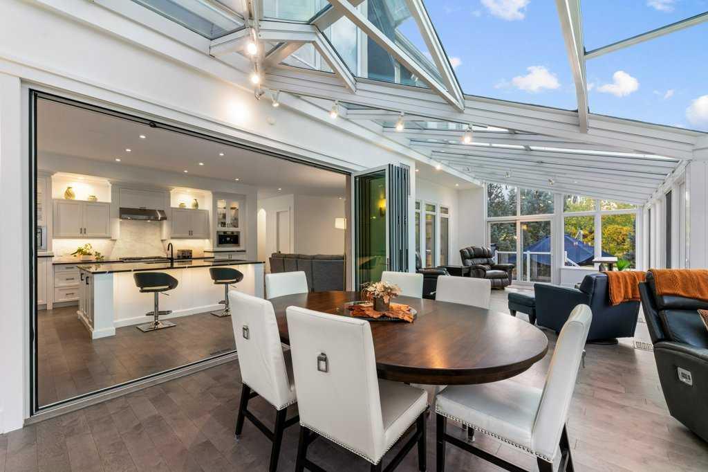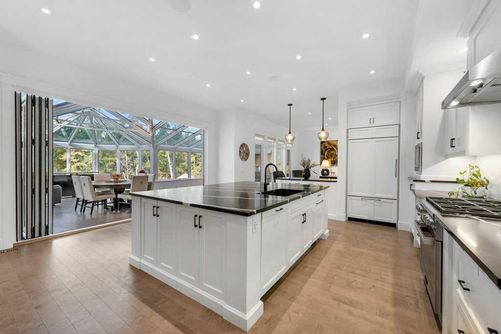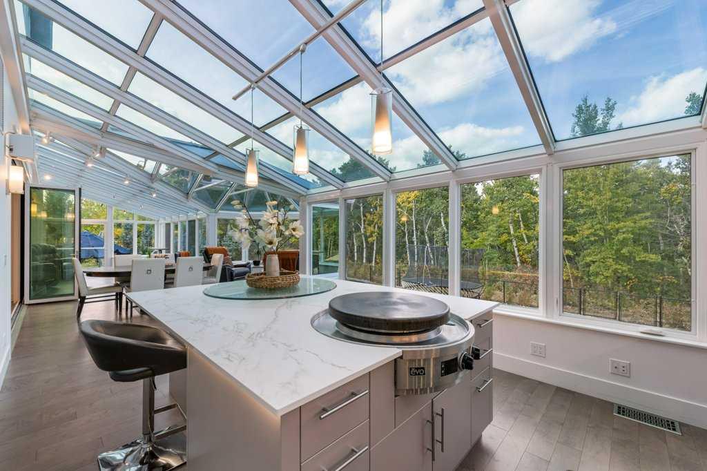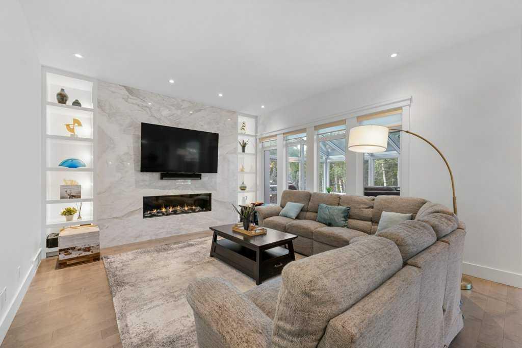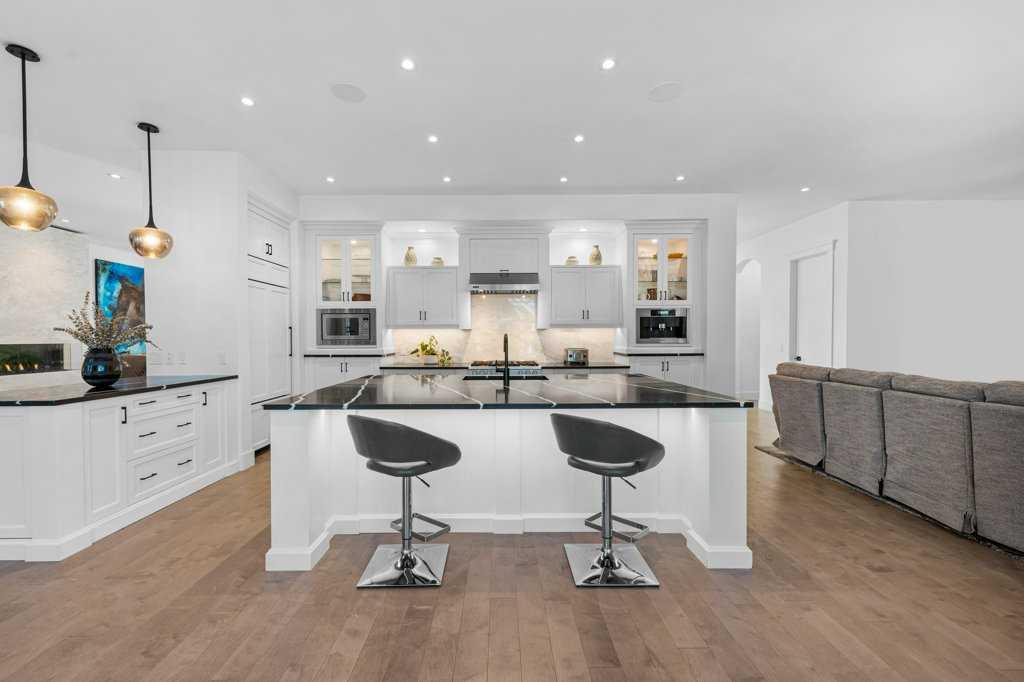 *Welcome to this extraordinary, fully renovated estate home in the prestigious community of Heritage Pointe, offering exclusive lake access and surrounded by natural forest beauty! Situated on a prime lot & backing onto a treed forest, the home has undergone a major renovation. It now features the addition of a spectacular 800 sq. ft. "entertainer's dream" 4 season sunroom (with new foundation and its own furnace/plumbing/air conditioning) - a true showpiece created for both relaxation and entertaining! Outfitted with premium appliances, the chef's kitchen serves large gatherings; a spacious dining room is adjacent, plus a living area for relaxation, where dual large-screen TV's seamlessly rise from the hardwood floors - at the touch of a button! The main home's central kitchen is renovated with new quartz counters/island, new appliances, marble backsplash, plus a newly reconfigured lighted pantry. With a living / dining room that has a new floor-to-ceiling feature "linear" fireplace, perfect ambience is createde. A stylish great room, also adjacent to the kitchen, provides built-in cabinetry with lighted accents. All new hardwood floors adorn the main level, new lighting, all solid interior doors, new carpets. A main floor office, half bath and mudroom complete the main level. The upper level currently features 4 bedrooms (could be bonus room with 3 bedrooms). The master suite showcases vaulted ceilings, a private sitting area overlooking the forest, spa-like 5 pc ensuite w/air jet tub, steam shower & large walk-in closet, heated floors! The professionally finished lower level features a 4th bedroom, bath, media area, games room w/expansive wine bar, fitness room w/cork flooring & 2nd laundry. Direct Connect networking throughout. Dual central air conditioners, gas generator and extensive solar system - serves entire home! The 4 car garages (two double garages) are separated by a breezeway. The rear yard showcases an 8 person "waterfall" mineral hot tub with an adjacent fire pit gathering area - grounds with underground sprinklers systems. Whether hosting a gathering or hosting a quiet evening, the indoor/outdoor ambience and forested views create a resort-like view year-round! Experience the best of lake living, privacy, and modern sophistication, in one of Alberta's most sought-after communities.