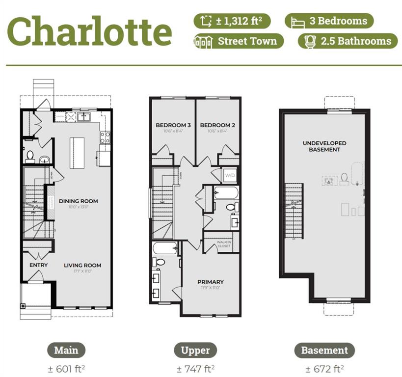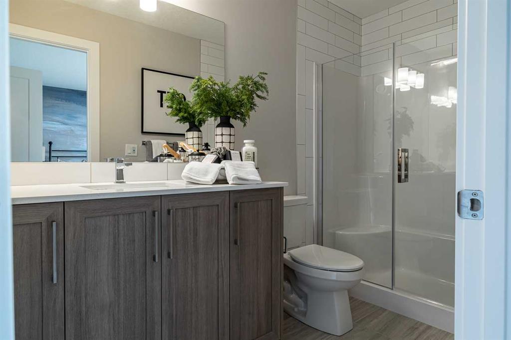 Welcome to the Charlotte by Partners Homes, a beautifully designed no-condo-fee townhome offering functional and stylish living space in the new North Calgary community of Keystone Creek. This brand new home combines thoughtful design, everyday convenience, and long-term value, all backed by the peace of mind of a new home warranty. The main floor features 9’ ceilings and a bright, open-concept layout with a rear kitchen designed for both cooking and entertaining. Highlights include upgraded MDF cabinetry, quartz countertops, a custom tile backsplash, a central island, and a stainless steel appliance package with an upgraded range. At the front of the home, the spacious dining and living areas are filled with natural light, creating an inviting atmosphere for family and guests. Upstairs, the primary suite offers a walk-in closet and a private ensuite with dual sinks and a walk-in shower. Two additional bedrooms, a full bathroom, and convenient upper-floor laundry complete the second level. The unfinished basement includes rough-in plumbing and excellent future development potential. At the rear, you’ll find a gravel parking pad with alley access. Located in Keystone Creek, one of Calgary’s newest communities, residents enjoy pathways connected to the regional trail system, naturalized wetlands, and green spaces designed for connection and exploration. Everyday amenities are just minutes away, including grocery stores, restaurants, childcare, and healthcare. Quick access to Stoney Trail, Deerfoot Trail, and major routes provides an easy commute to CrossIron Mills, downtown Calgary, and YYC International Airport. Experience modern living with timeless design in Keystone Creek. Book your private showing today and discover why the Charlotte is one of the most desirable new townhomes for sale in North Calgary!