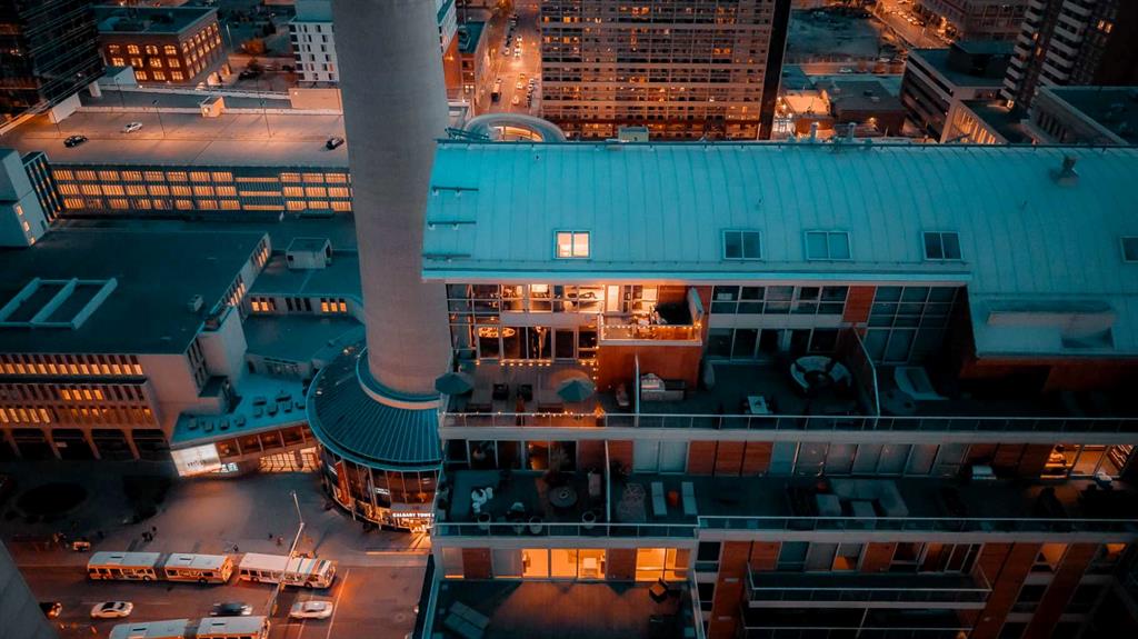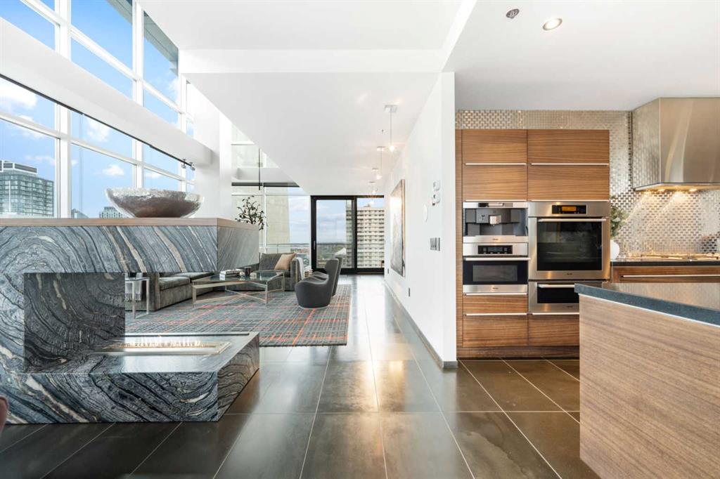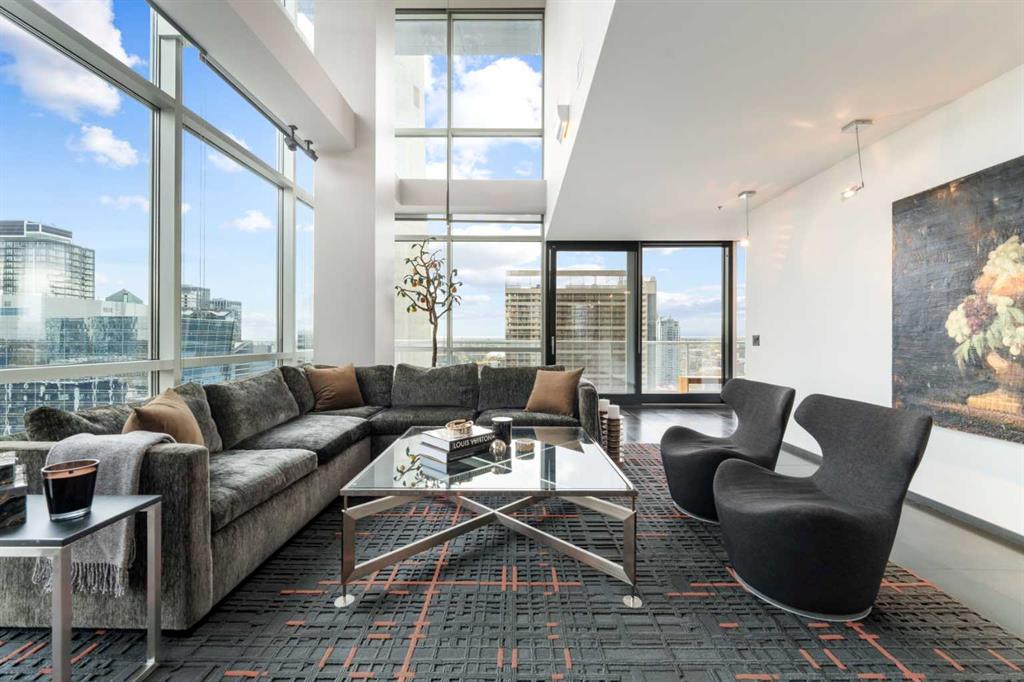 Executive Two-Story Penthouse with Expansive Downtown Views of Calgary and beyond. Showcasing breathtaking North, South and East exposure. Ideally located next to Calgary's Arts Common Building, Glenbow Museum, Calgary Tower, the historical Palliser Hotel, as well as Stephen Avenue Street Mall with its endless restaurants, cafes, shops and lounges. The residence at the Le Germain offers a true elevated lifestyle with world-class amenities such as Concierge, Spa and Gym access, housekeeping services, dry cleaning services, 24/7 building surveillance, pet wash, car wash, maintenance, as well as a hotel account privileges and in-suite dining delivered to your door from the award winning Charcut Restaurant all at your fingertips. With two elevators taking you to the 20th floor, you will enter 2,399 sq.ft. of luxury living with soaring ceilings through out including a vaulted living room, custom fireplace featuring leathered silver wave marble and Zebra Walnut built in cabinetry through out. The chef-inspired kitchen offers Miele appliances including built-in oven, 5 burner gas cook top, warming drawer, microwave/convection oven, range hood, built-in coffee machine, dishwasher and refrigerator. Also featured is the stackable Asko Washer and Dryer and Cavavin by LG wine refrigerator. With black quartz countertops adorning the cooking space as well as the expansive island. With endless built in storage along the West wall including the Concierge closet to receive your deliveries and dry cleaning. Across from the Concierge closet enjoy the separate laundry room where the custom cabinetry continues, including a convenient laundry chute from the second floor down. Under the stairwell you will find in-suite storage. Expand your living space through the nine-foot doorway leading to a 630 sq.ft. (approx.) terrace, one of three balconies enhancing the skyline views, from the second 39-ft. long (approx.) south facing balcony enjoy spectacular views of the Calgary Tower and beyond. Upstairs, the primary suite offering stunning north facing views, a five-piece ensuite including an oversized shower, dual vanities and soaker tub. Following through with the custom Zebra walnut wood cabinetry into the walk-in closet, with built-in safe and enjoy your private deck with hot tub, overlooking the lively Stephen Avenue Street Mall. The guest suite features south-facing views providing comfort and privacy with its own three-piece ensuite. Across from the guest suite find a coinvent office or study area with a custom desk. Enjoy three separate air conditioning units, one for each level of the suite. Included are two assigned parking stalls, with use of a third and one storage unit. Owner insurance required on improvements to unit and personal contents. Truly sophisticated urban living at its finest.