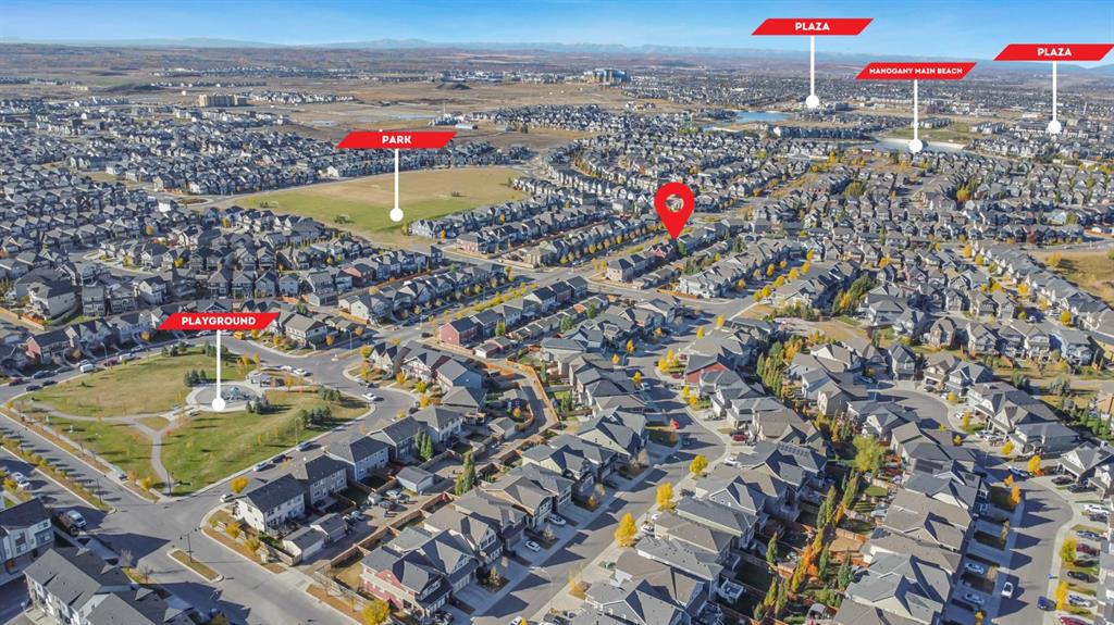 Welcome to the award-winning lake community of Mahogany! Ideally located just steps from the Beach Club, this warm and inviting semi-detached home offers the perfect blend of comfort, style, and community living.This home is sure to impress with a desirable floor plan featuring an open concept design, 9’ ceilings, wide plank laminate floors throughout the main level, and oversized windows that fill the space with natural light. The heart of the home is the upgraded kitchen, showcasing quartz countertops, modern cabinetry, and a layout designed for both everyday family meals and effortless entertaining. You’ll also appreciate the comfort of central air conditioning and the convenience of a double detached garage, offering plenty of space for parking and storage. Upstairs, you’ll find three spacious bedrooms, including a relaxing primary suite complete with a private ensuite and walk-in closet. A second full bathroom makes busy mornings effortless. The finished basement extends your living space with a fourth bedroom, three-piece bathroom, and a flexible rec area that can grow with your family — whether it’s a playroom, home gym, or movie space. Steps from your doorstep, enjoy all that Mahogany has to offer: sandy beaches, swimming, skating, parks, pathways, and year-round activities for every age. This is where family memories are made — welcome home to Mahogany.