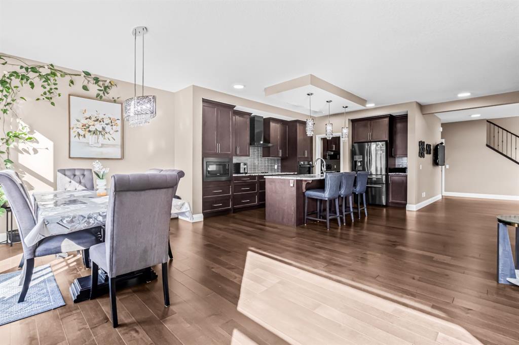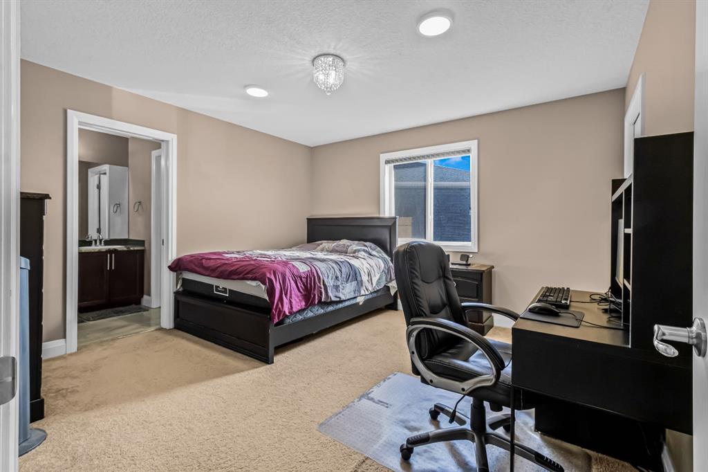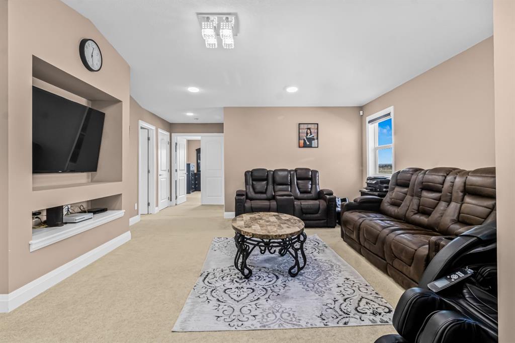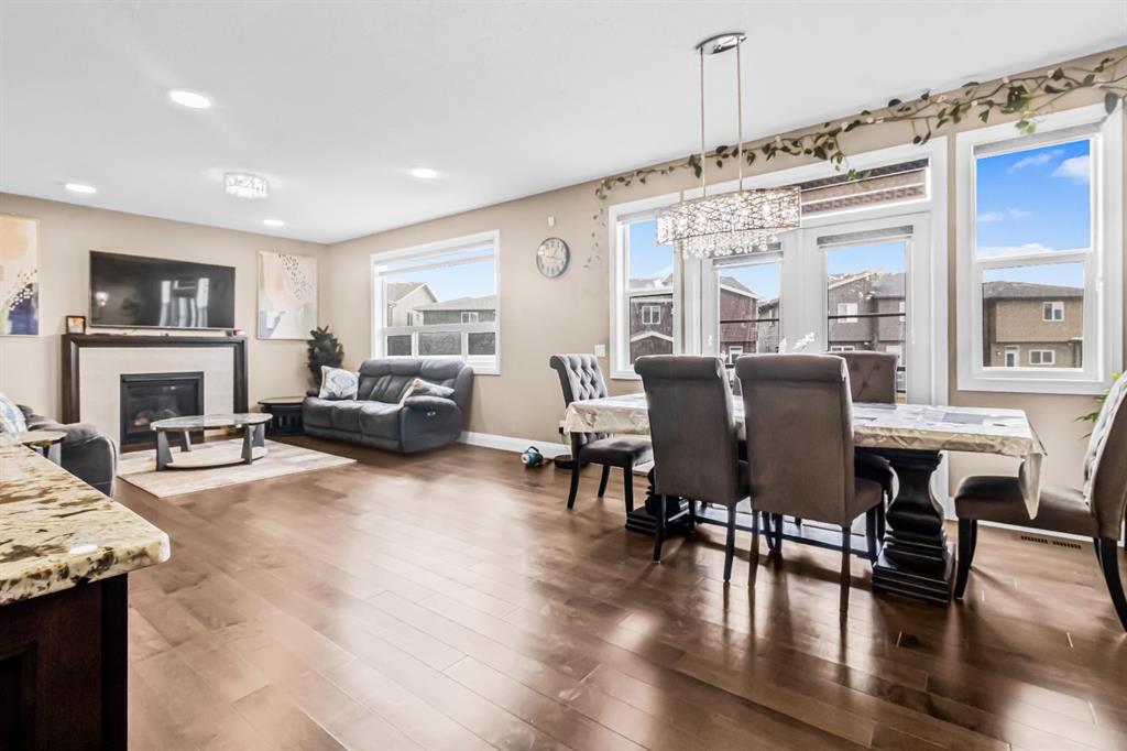 Welcome to this FULLY UPGRADED, executive home nestled in the heart of Cornerstone, one of Calgary’s most sought-after, amenity rich communities. This beautifully appointed home offers over 4,400sqft of total living space, combining elegance, functionality, and comfort for today’s modern family. Step through the grand double-door entrance into a spacious, sunlit family room, perfect for welcoming guests or relaxing in style. The open-concept floor plan seamlessly connects the family room to the gourmet chef’s kitchen, featuring granite countertops, premium cabinetry, and a massive island ideal for entertaining. Just off the main kitchen, you’ll find a beautiful SPICE KITCHEN with a walk-in pantry, making everyday cooking and hosting effortless. Flooded with natural light, the second spacious living room features a modern gas fireplace and flows perfectly into your dining area. There is also a main floor den that can easily function as a bedroom, complemented by a full bathroom, offering both flexibility and convenience. Upstairs, you’ll find four generously sized bedrooms, including a truly spectacular primary retreat. The primary master bedroom offers a peaceful escape with a massive walk-in closet and a luxurious ensuite featuring double vanities, soaker tub and a custom tiled shower. The other 3 bedrooms on the upper floor also each have direct access to a full bathroom. A centrally located bonus room provides a cozy family hangout space, and the pocket office/prayer room adds convenience and versatility for today’s modern lifestyle. The fully finished basement is an incredible asset—featuring a 3-BEDROOM illegal suite (subject to city approval) with a separate entrance, its own laundry, and a full bathroom—perfect as a mortgage helper or for extended family living. Outside, find your fully fenced and landscaped backyard, offering privacy, serenity, and an excellent place to hang out. Other notable features of this home include a triple car driveway, massive double car garage, dual furnaces, over 6,200sqft lot, rear alley access and so much more! This is an extremely rare opportunity to own a custom-upgraded luxury home in an elite community. Homes like this don’t come along often—schedule your private showing today!