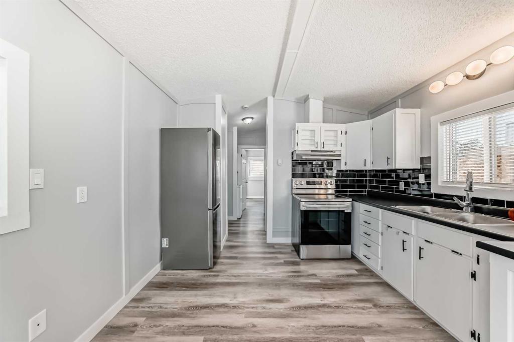 Back on the market due to financing...Re-done Park Model... Oasis Mobile Home Park. If quiet and bright is what your looking for.. look no further. This 1985 park model home with 1 bedroom, 1 (4 pc) bathroom, offers a spacious design with high ceilings, multiple large (vinyl) windows that allows a sunshine to pour in. Newly renovated with classy finishes, fresh painted, new (laminate) flooring and kitchen appliances. The attached garage (550 sqft) is insulated, wired for 240 amps, epoxy floor and new concrete driveway. Perfect for vehicles, workshop or extra storage. Affordable lot lease rate ($760.00 per month), including water, sewer, snow removal, park maintenance. Book your showing today with your favourite Realtor.