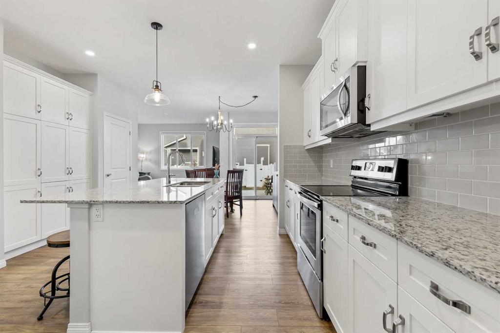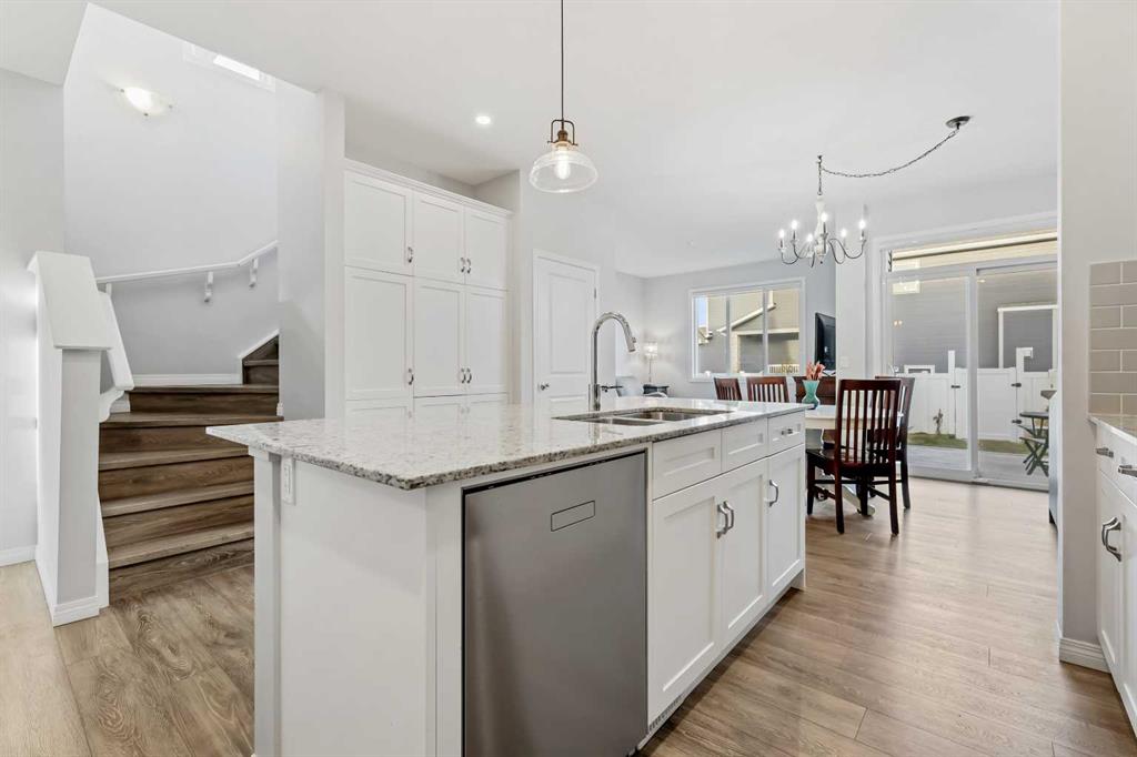 Welcome to this beautifully updated 2-storey home tucked away on a quiet street in the sought-after, family-friendly community of Legacy. Offering more than 2,000 SQFT of thoughtfully designed living space, this air-conditioned property combines comfort, functionality, and modern style. Step inside to find an open-concept main floor highlighted by 9-ft knockdown ceilings, abundant natural light, and luxury Torlys Smart Vinyl flooring installed on both the main and upper levels. The chef-inspired kitchen is perfect for entertaining—featuring a large central island with granite countertops, tiled backsplash, stainless steel appliances including a new Samsung fridge (2024) and Asko dishwasher (2023), plus custom cabinetry and a full pantry. The adjacent dining area includes added built-in cabinets for extra storage and seamlessly flows into the bright living room, creating a welcoming space for family gatherings. Upstairs, you’ll find three spacious bedrooms including a primary suite with a walk-in closet and 4-piece ensuite featuring dual sinks. Two additional bedrooms, a convenient upper-floor laundry room, and another full bath complete this level. The professionally developed basement expands your living space with a large rec room, fourth bedroom with oversized window, and a 4-piece bathroom—perfect for guests, teens, or extended family. Other highlights include a new Goodman furnace, Lifebreath Ventilator, Lennox Air Purification System, R50 attic insulation (Nov 2022 by IDEAL Insulation), and Gemstone exterior lighting around the garage and upper level. The home has been freshly painted (main and upper levels within the last two years, basement recently refreshed). Enjoy outdoor living in your fully fenced backyard with a deck, and appreciate the convenience of an oversized single attached garage with an extended triple driveway. Located in a growing community with new schools and All Saints High School nearby, parks, shopping, and scenic walking paths, this move-in ready home offers unbeatable value. Don’t miss your chance to experience the best of Legacy living—book your private showing today!