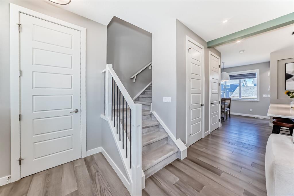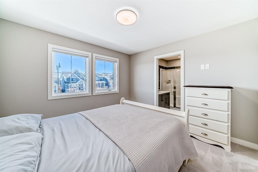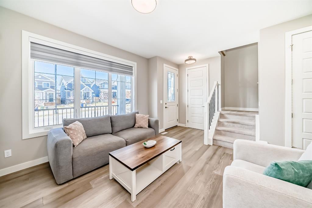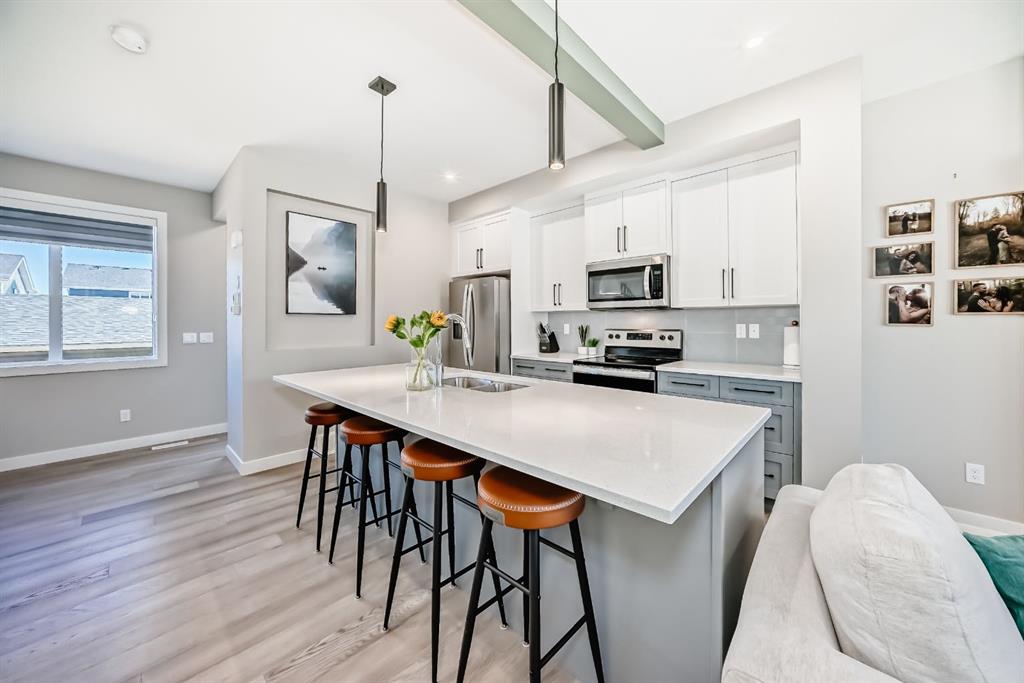 Welcome to this beautifully upgraded single-family detached home, perfectly combining modern style and everyday functionality. Step inside to find a spacious, open-concept layout featuring soaring 8-foot interior doors and high-end finishes throughout. The kitchen is a true showstopper with sleek quartz countertops, stainless steel appliances, and beautiful cabinetry—ideal for both cooking and entertaining. Relax in the cozy living area, complete with a contemporary electric fireplace that adds warmth and ambiance. This home offers three generously sized bedrooms, including a luxurious primary suite with a bit of a mountain view, a full ensuite and a large walk-in closet. The unfinished basement comes with a bathroom rough-in, offering endless potential to create the space you need. Outside, enjoy a beautifully landscaped yard, a back deck perfect for BBQs, and an oversized, insulated garage with plenty of room for vehicles, storage, or a workshop. Located in a vibrant and convenient community, you're just steps away from schools, walking paths, parks, and the nearby Trading Post commercial area, featuring restaurants, a convenience store, dental office, pharmacy, bakery, and more. This home truly offers the perfect blend of comfort, style, and location.