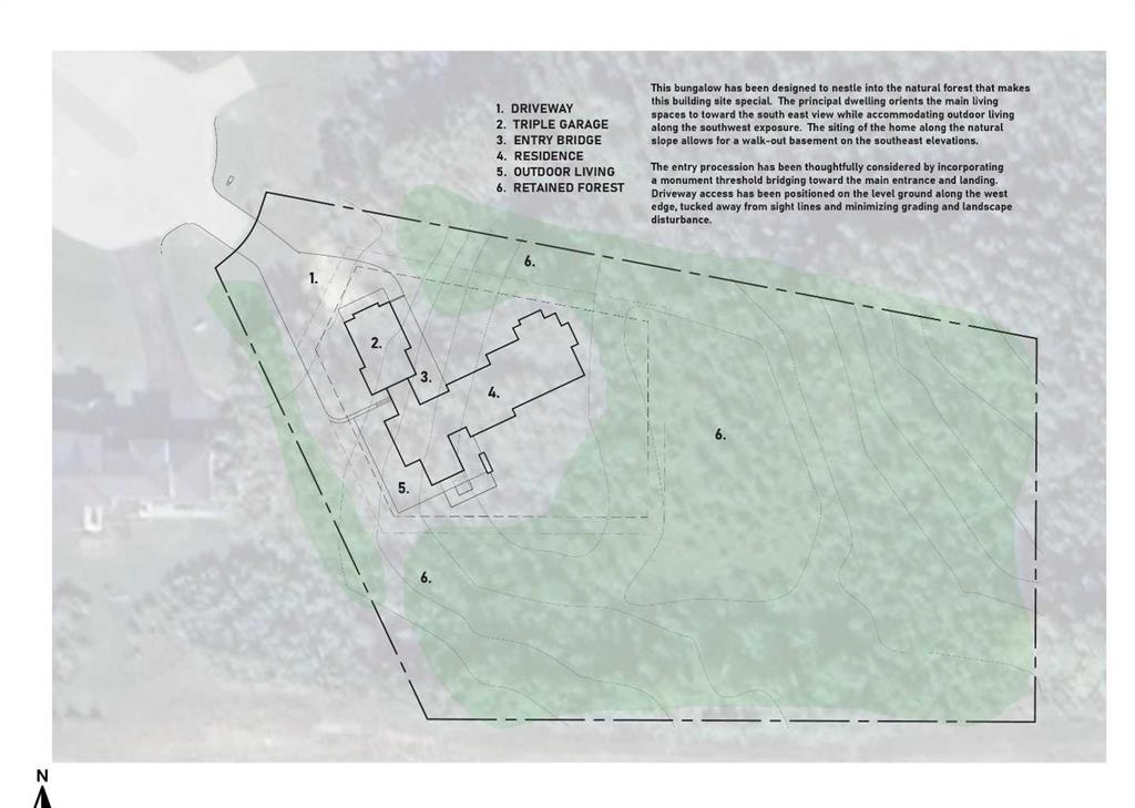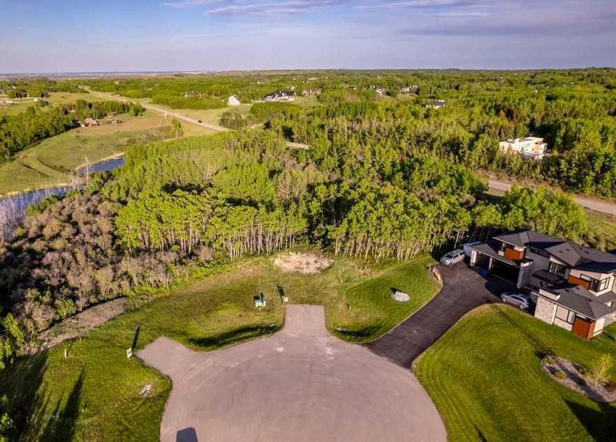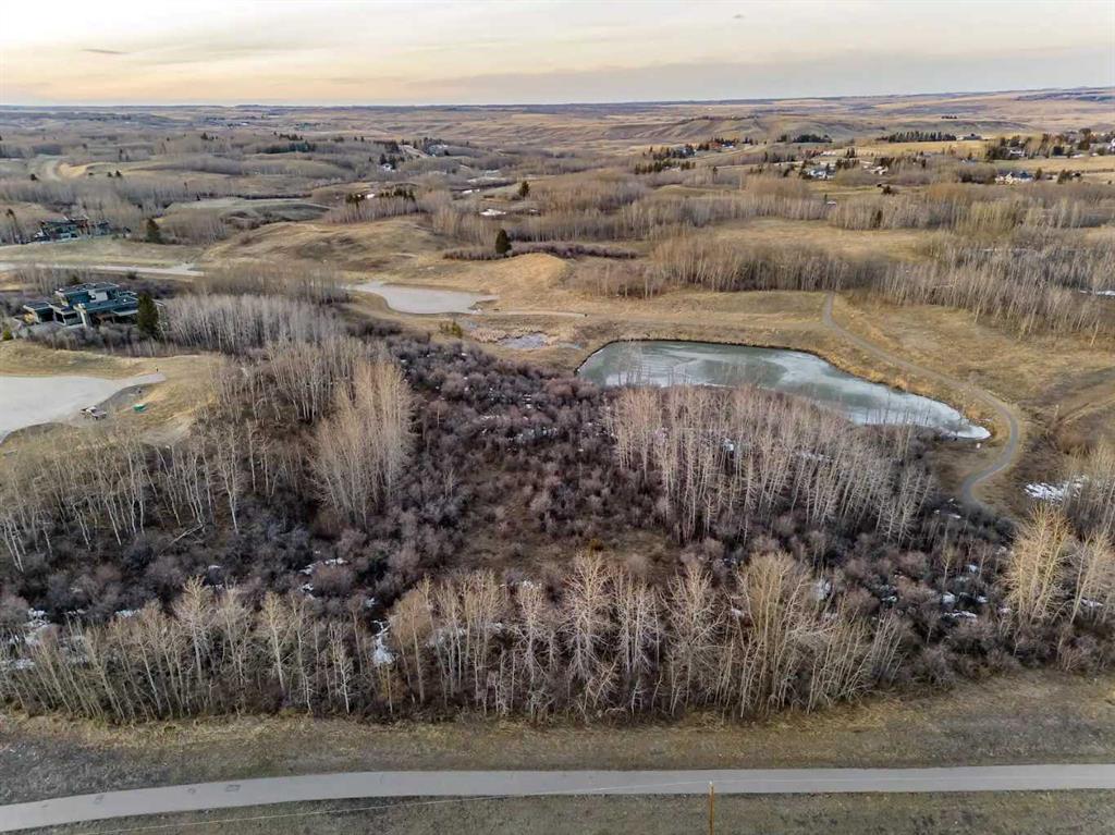 Experience the rare opportunity to own one of the most desirable properties in Silverhorn, an exclusive enclave in the heart of Bearspaw. This magnificent 2.12-acre estate lot—the largest in Phase 1—is perfectly positioned on a serene cul-de-sac surrounded by distinguished luxury residences, offering a remarkable setting for your dream home. Nestled into a wooded hillside overlooking a tranquil natural pond, this southeast-facing homesite is ideally suited for a walkout design, allowing you to fully embrace the peaceful beauty of its natural surroundings. The lot offers exceptional servicing, including water co-op, gas, power, electricity, Shaw high-speed fiber optic cable, and septic connection—all conveniently located at the lot line. Silverhorn’s architectural guidelines ensure enduring quality, refined aesthetics, and design integrity throughout the community, safeguarding your investment and maintaining the neighbourhood’s prestigious character. You also have the freedom to select your own builder, and *included* with *this* property are IBI Group–approved plans for a 3820 sq. ft. modern bungalow with a triple garage, and fully finished walk-out lower level with an additional 2800 square feet. The home has been meticulously and thoughtfully crafted and designed to harmonize with the land itself—its clean, contemporary architecture takes full advantage of the southeast orientation, expansive pond views, and the gentle contours of the wooded hillside. Every detail, from the window placement to the outdoor living spaces, has been thoughtfully crafted to celebrate the natural topography and serene setting, creating a home that feels both rooted in nature and refined in design. With a conservation-first vision, Silverhorn features over 50% open space, 7 kilometres of scenic walking trails, and ample privacy buffers between each property. Perfectly located just minutes west of Calgary, it offers a seamless balance between peaceful country living and urban convenience.