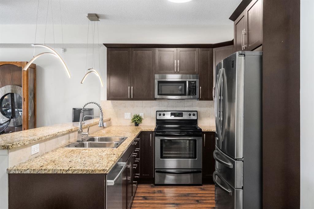 Step inside to find a welcoming entryway with ample closet space and in-suite laundry for everyday practicality. The kitchen is a showstopper, featuring maple cabinetry, granite countertops with tones of storage, stainless steel appliances that make cooking a pleasure. The breakfast bar is perfect for enjoying morning coffee or a quick meal.